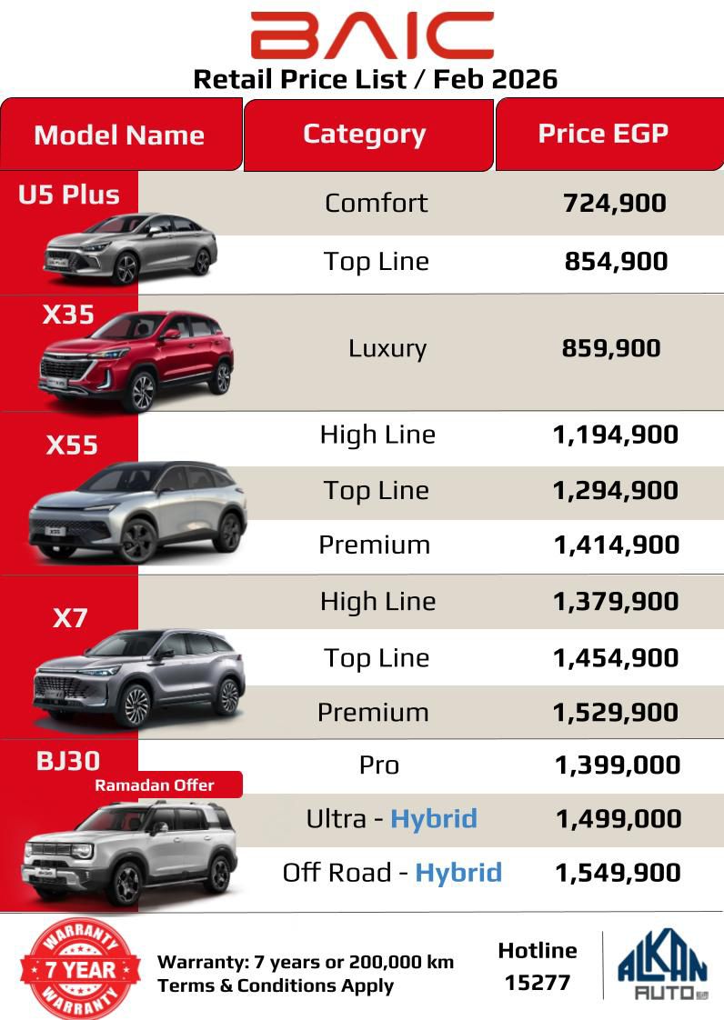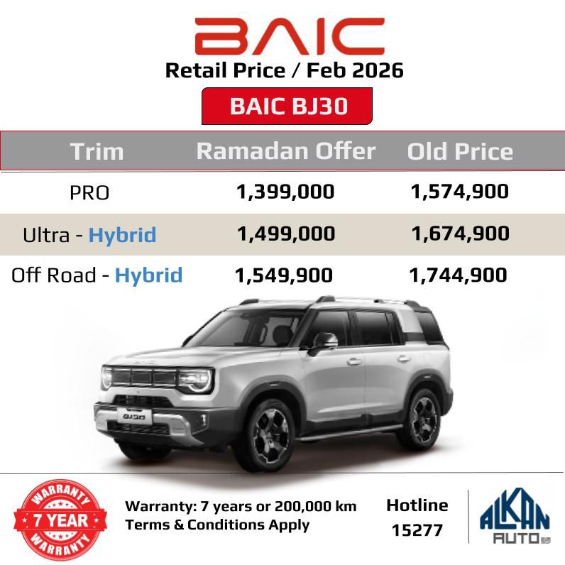 أعلنت شركة ألكان أوتو، وكيل علامة بايك الصينية في مصر، عن تخفيض أسعار فئات سيارة سعر بايك BJ30 بقيمة 195 ألف جنيه خلال شهر رمضان المبارك فقط.