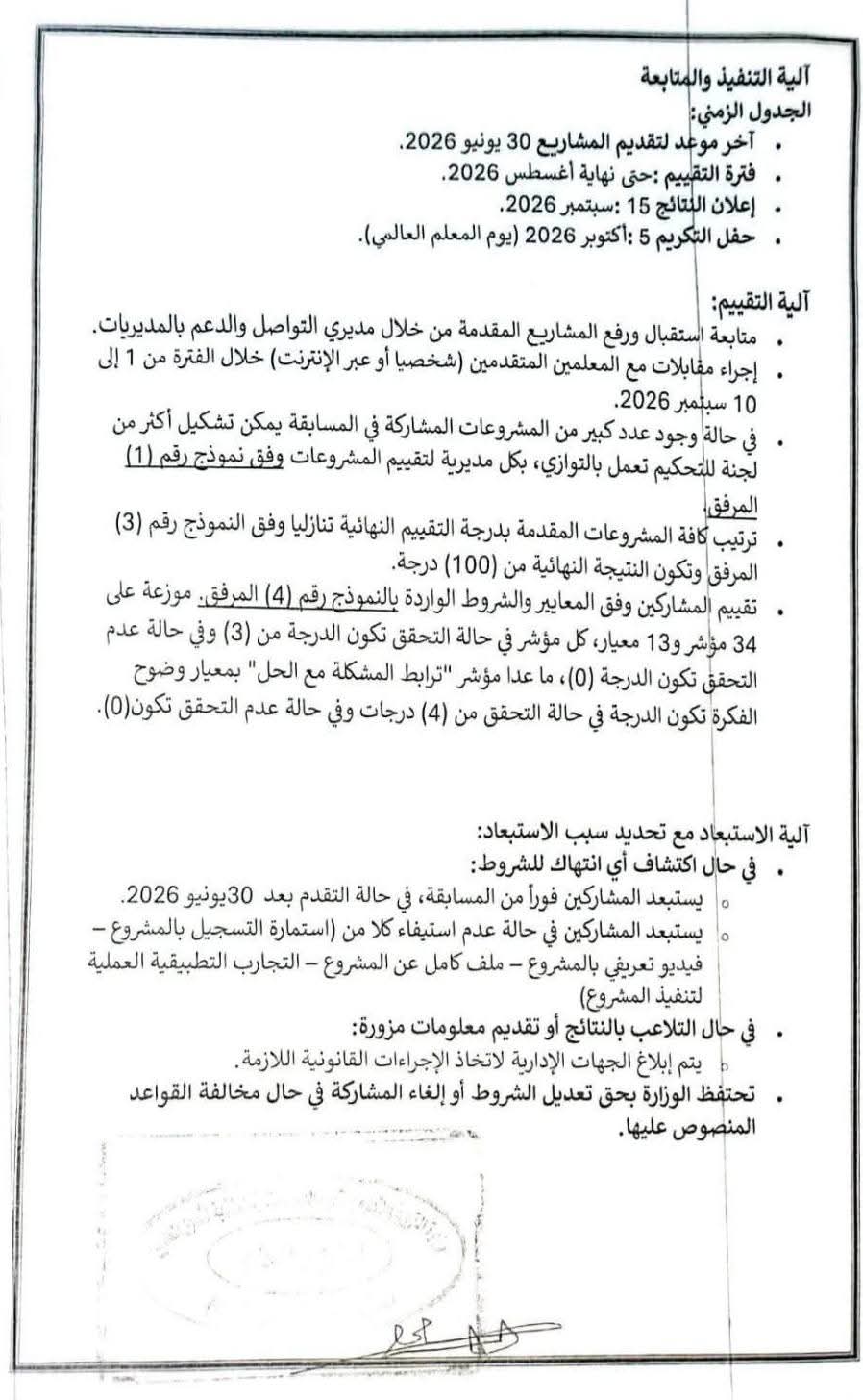 - حفل التكريم: 5 أكتوبر 2026 بالتزامن مع يوم المعلم العالمي.
