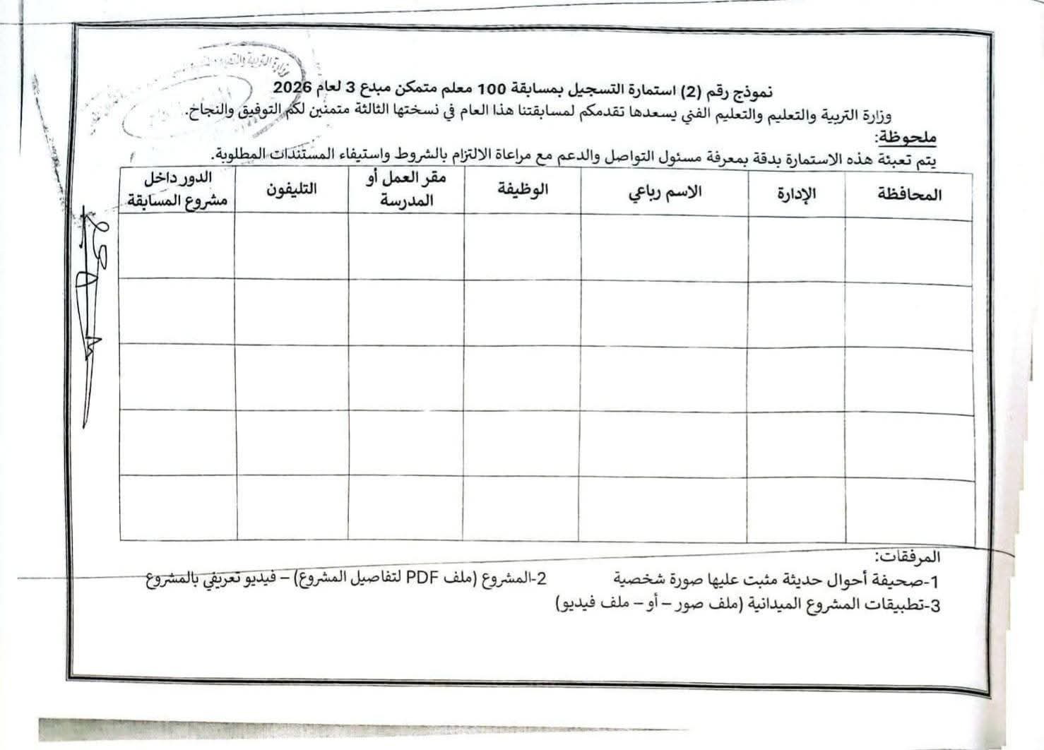 مسابقة 100 معلم متمكن مبدع لعام 2026