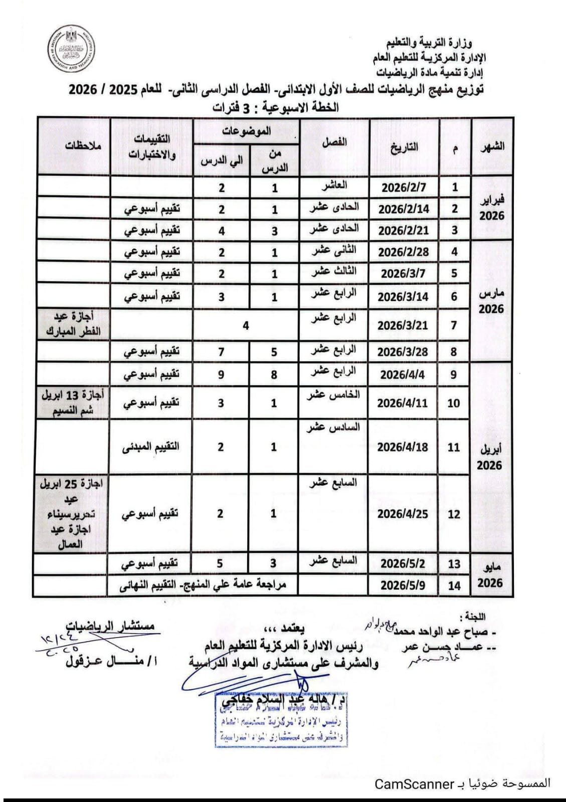 - مراجعة جدول توزيع الدروس الأسبوعية المرفق من الوزارة.