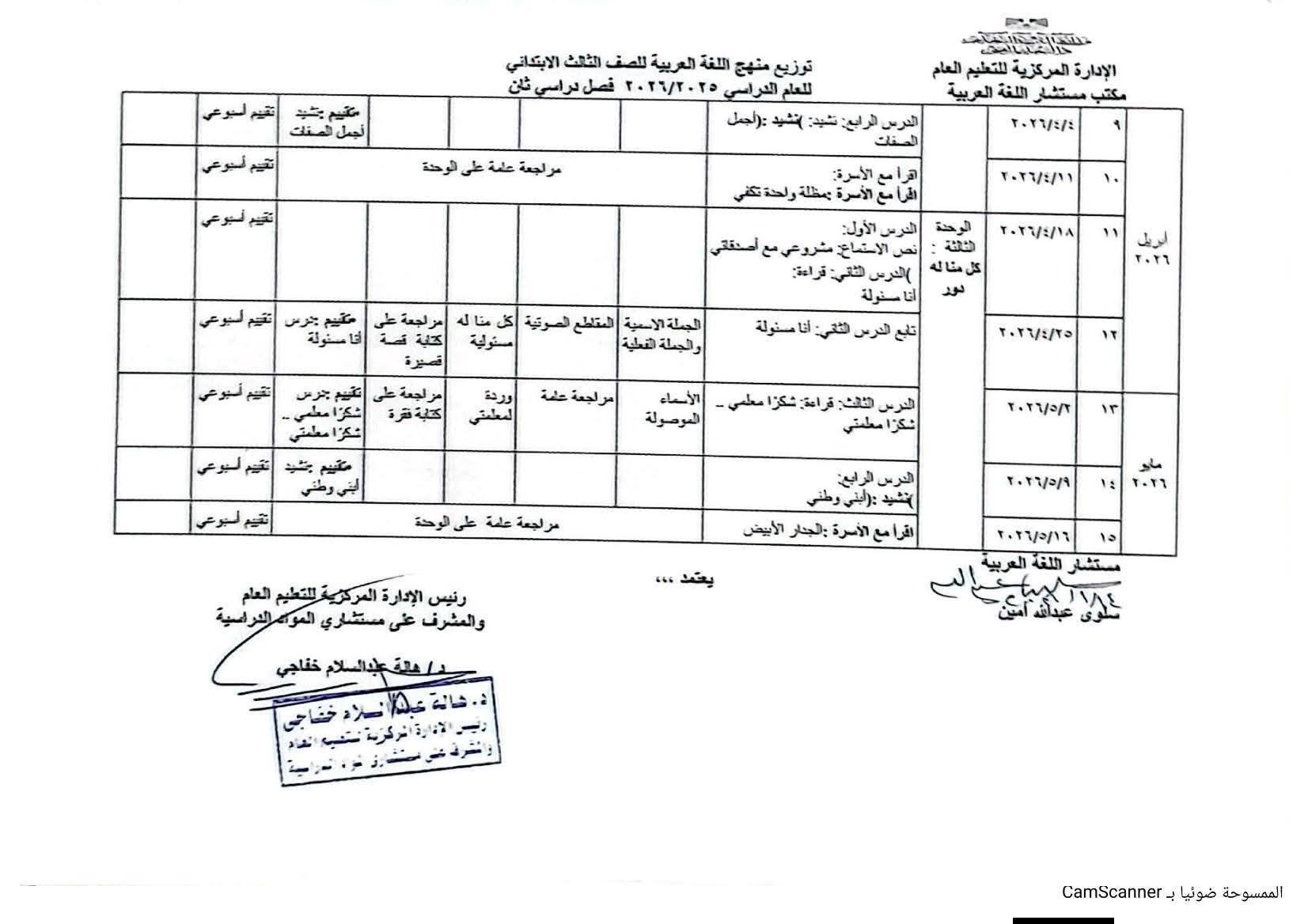 توزيع منهج اللغة العربية للصف الثالث الابتدائي الترم الثاني