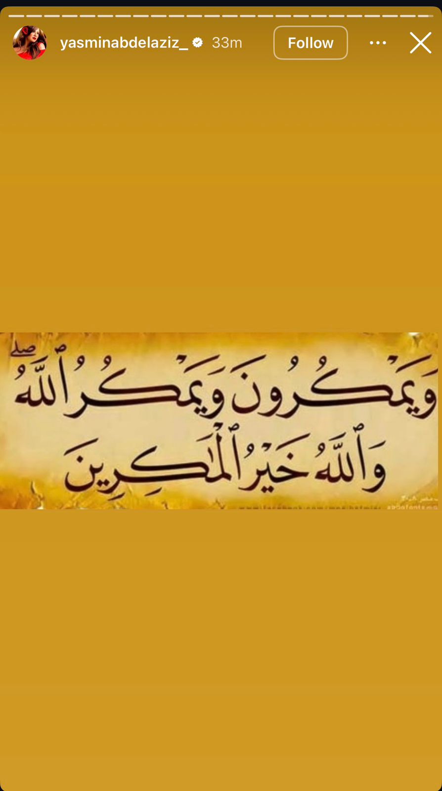 واستخدمت ياسمين عبدالعزيز عبر خاصية الاستوري على "إنستجرام" آية قرأنية: "وَيَمْكُرُونَ وَيَمْكُرُ اللَّهُ وَاللَّهُ خَيْرُ الْمَاكِرِينَ"، بعدما كشفت مجموعة من الصور المتتالية أظهرت خلالها تفوق مسلسلها في العديد من البلدان العربية، ومنصات العرض.