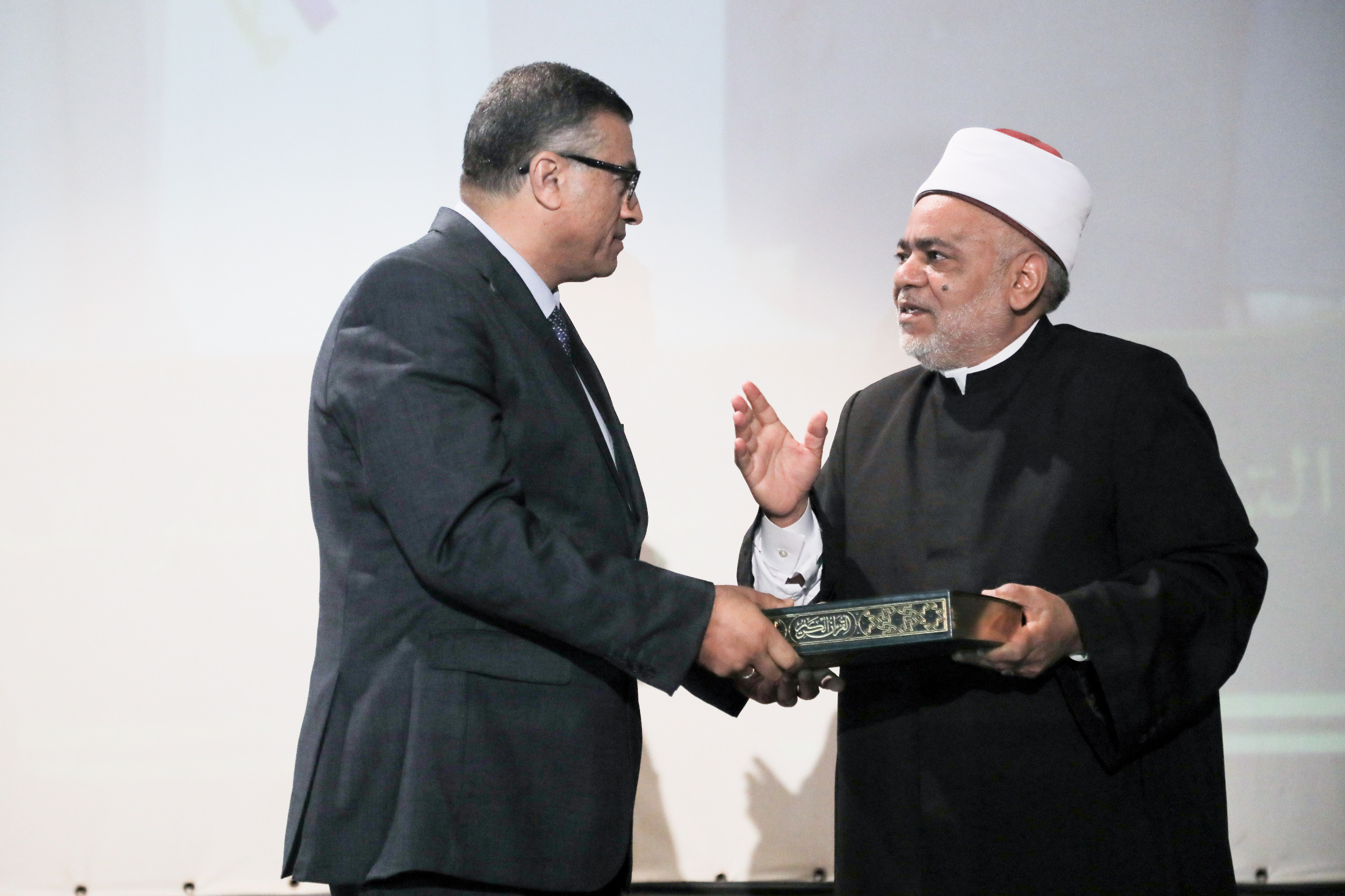 تقديرًا لجده الإمام الببلاوي.. شيخ الأزهر يهدي محافظ قنا مصحفا بماء الذهب