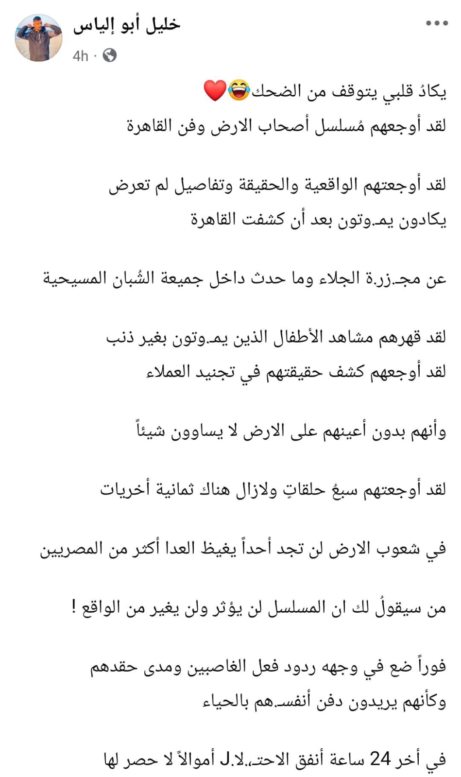 فلسطيني يرد على انتقاد الاحتلال لمسلسل صحاب الأرض: "أوجعهم العمل وفن القاهرة"