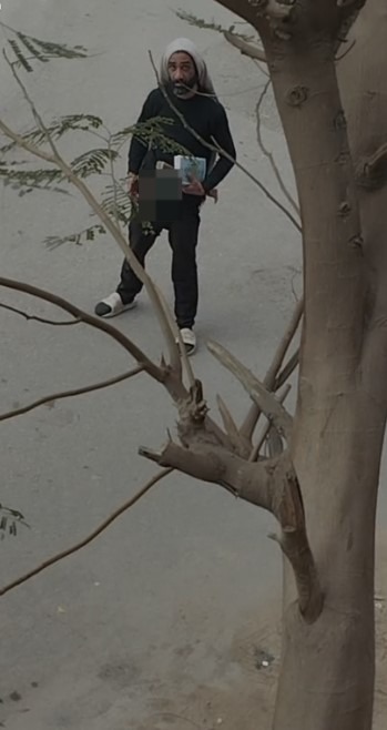 وحصلت "تليحراف مصر"، على صور سجلتها الأسرة، توثق لحظة قيام الأخير بالتعدي عليهم وأداء حركات خادشة للحياة والبثق أمام منزلهم.