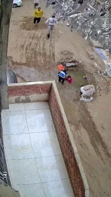 وظهر بالفيديو طفل يسقط في بلاعة صرف صحي مفتوحة، فيما قام طفل آخر بالإمساك به حتى حضر شباب آخرين وسحبوه.