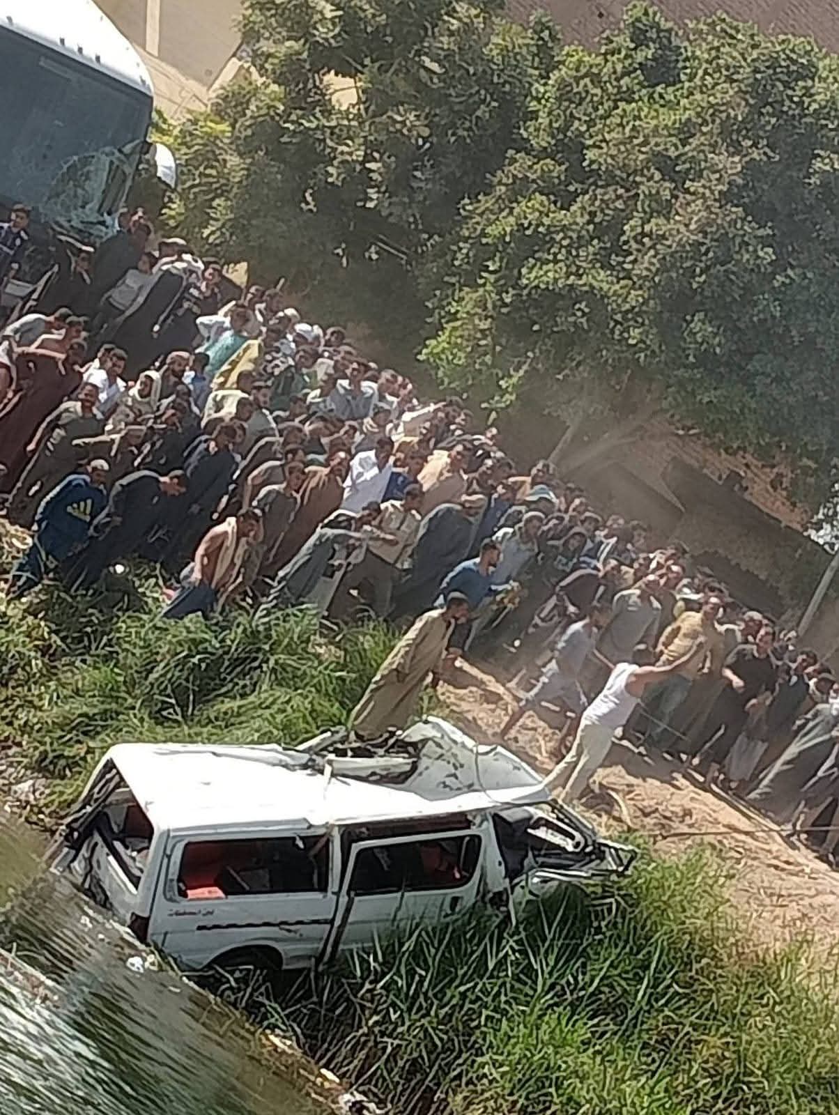انقلاب ميكروباص في ترعة الرياينة إثر حادث تصادم مع أتوبيس بالأقصر (صور)