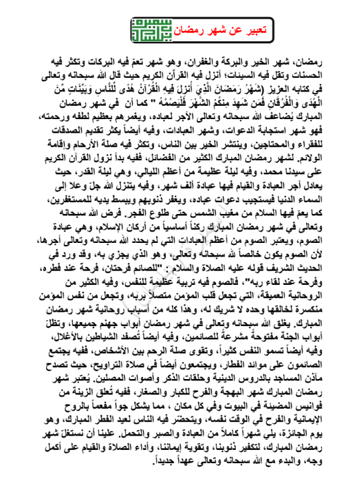 - مقدمة موضوع تعبير عن الصيام.
