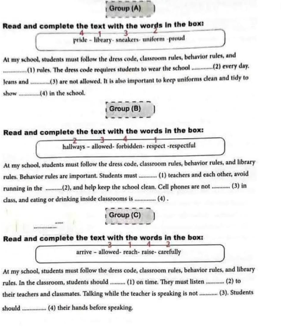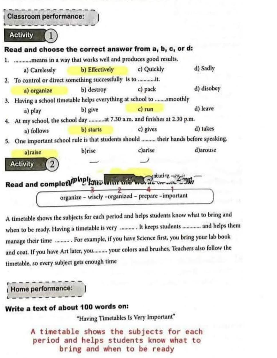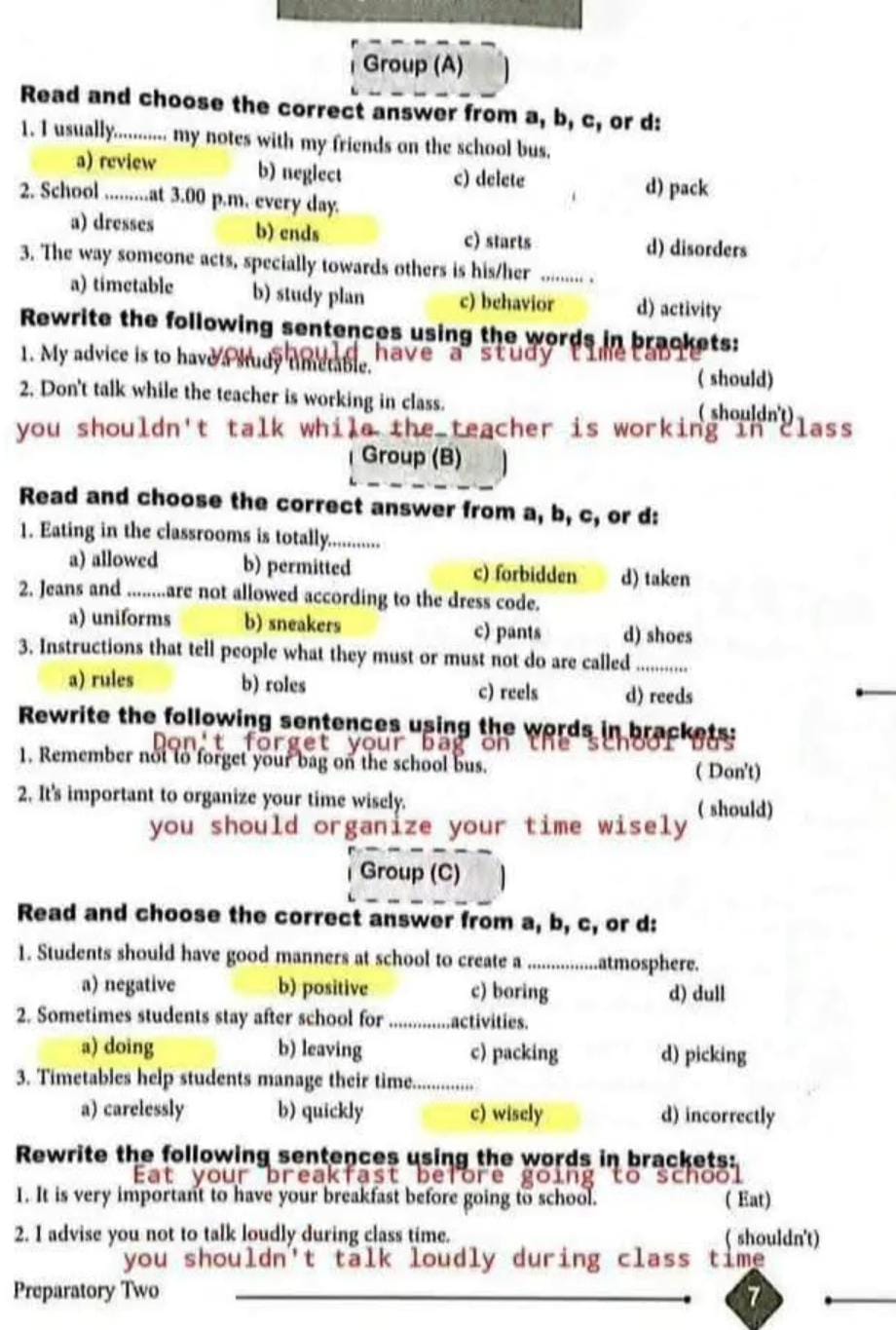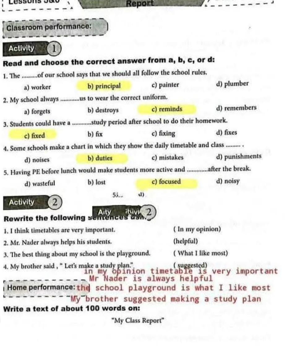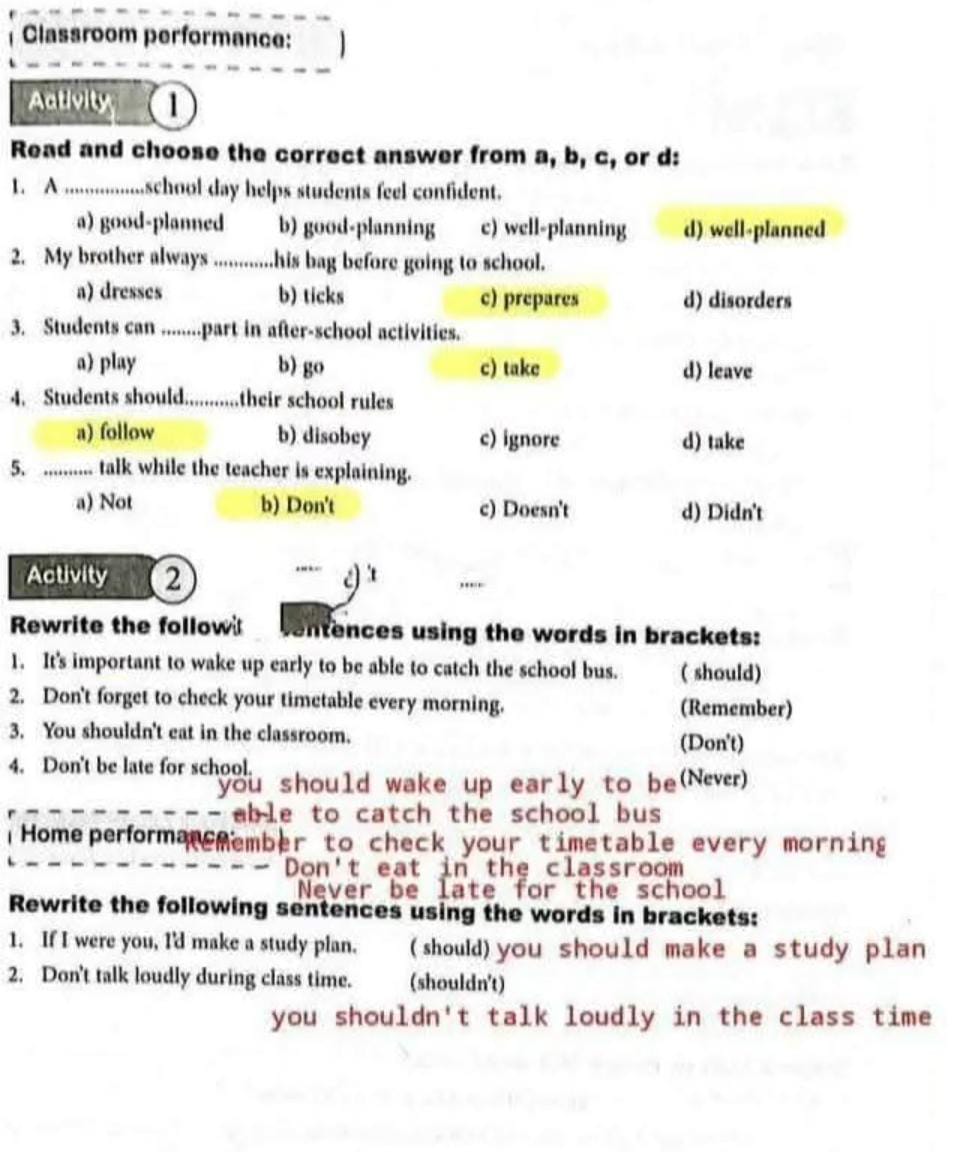 - التأكد من صحة الإجابات بعد حل التمارين الصفية.
