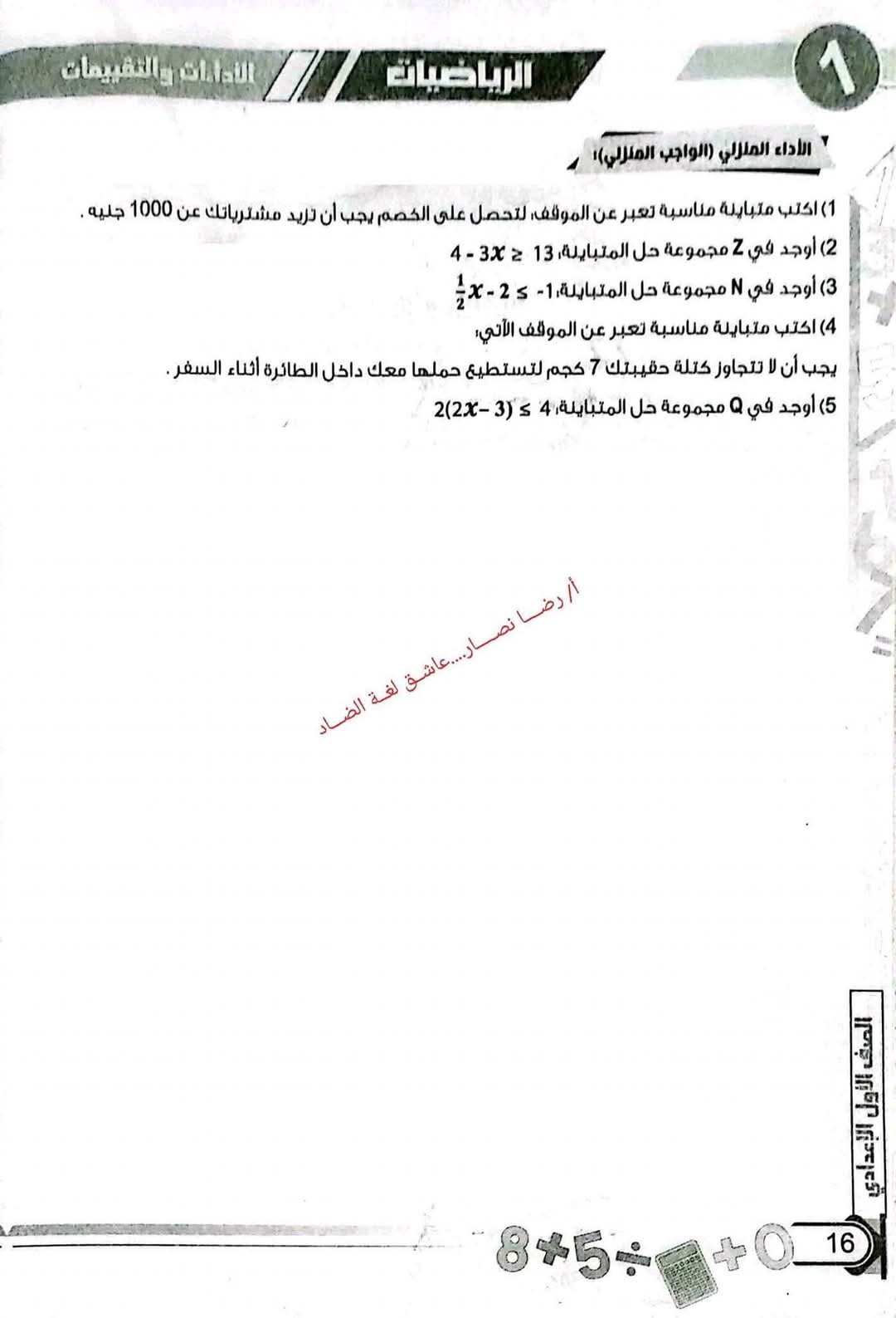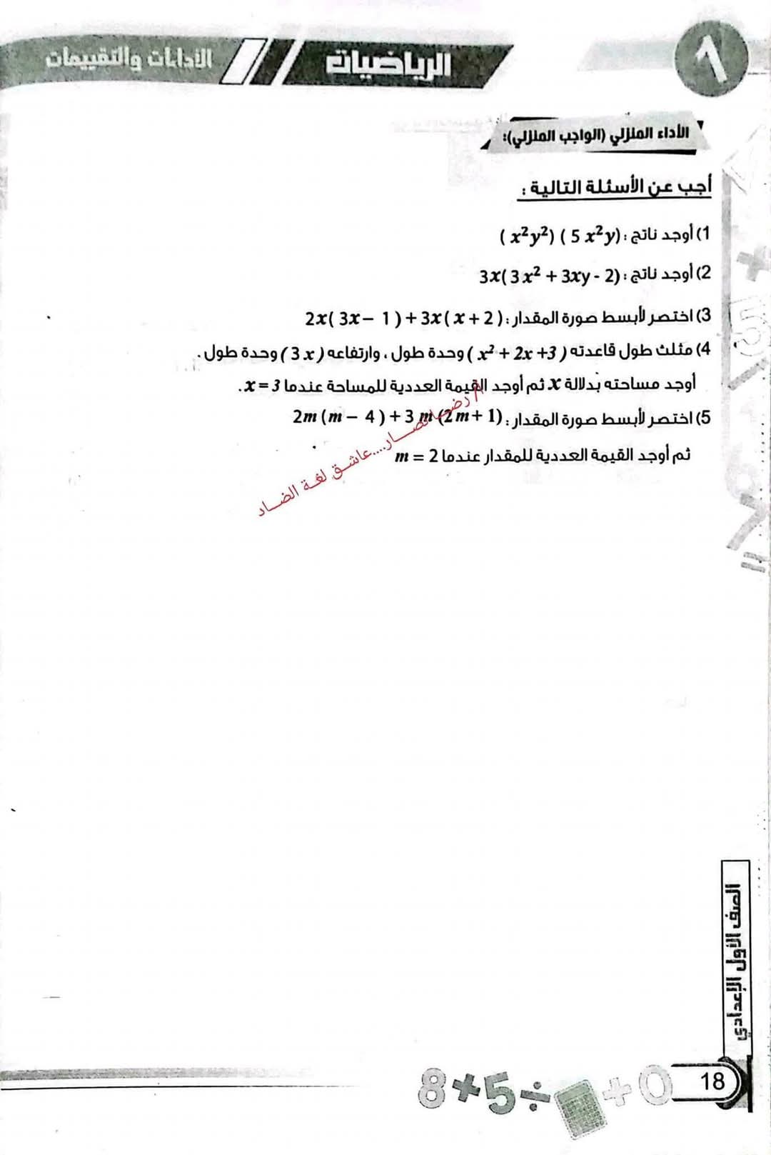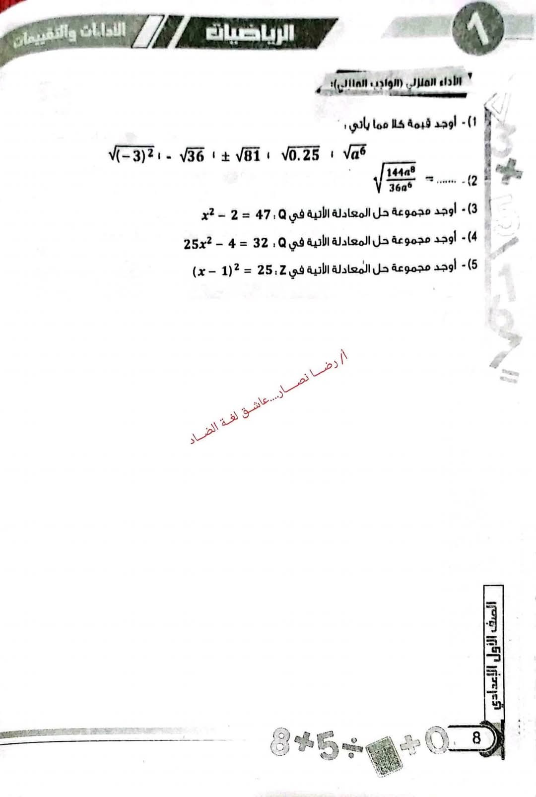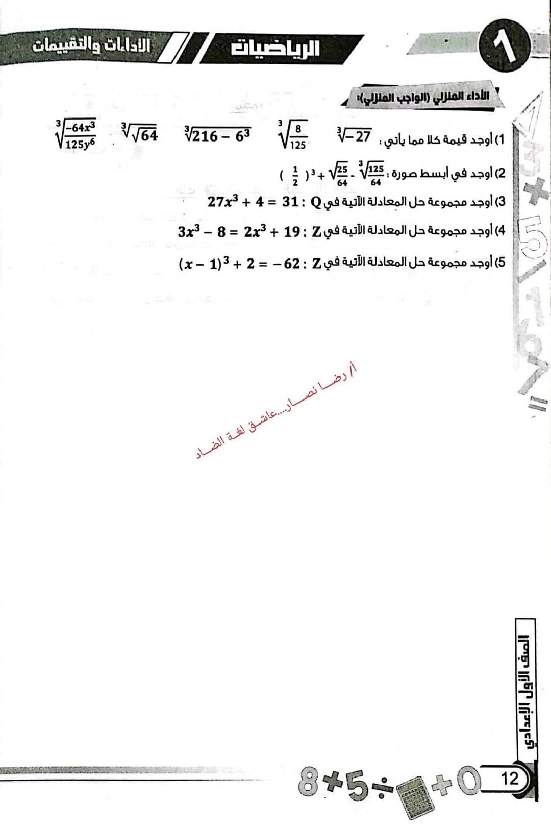كتاب التقييمات للصف الأول الإعدادي رياضيات pdf محلول