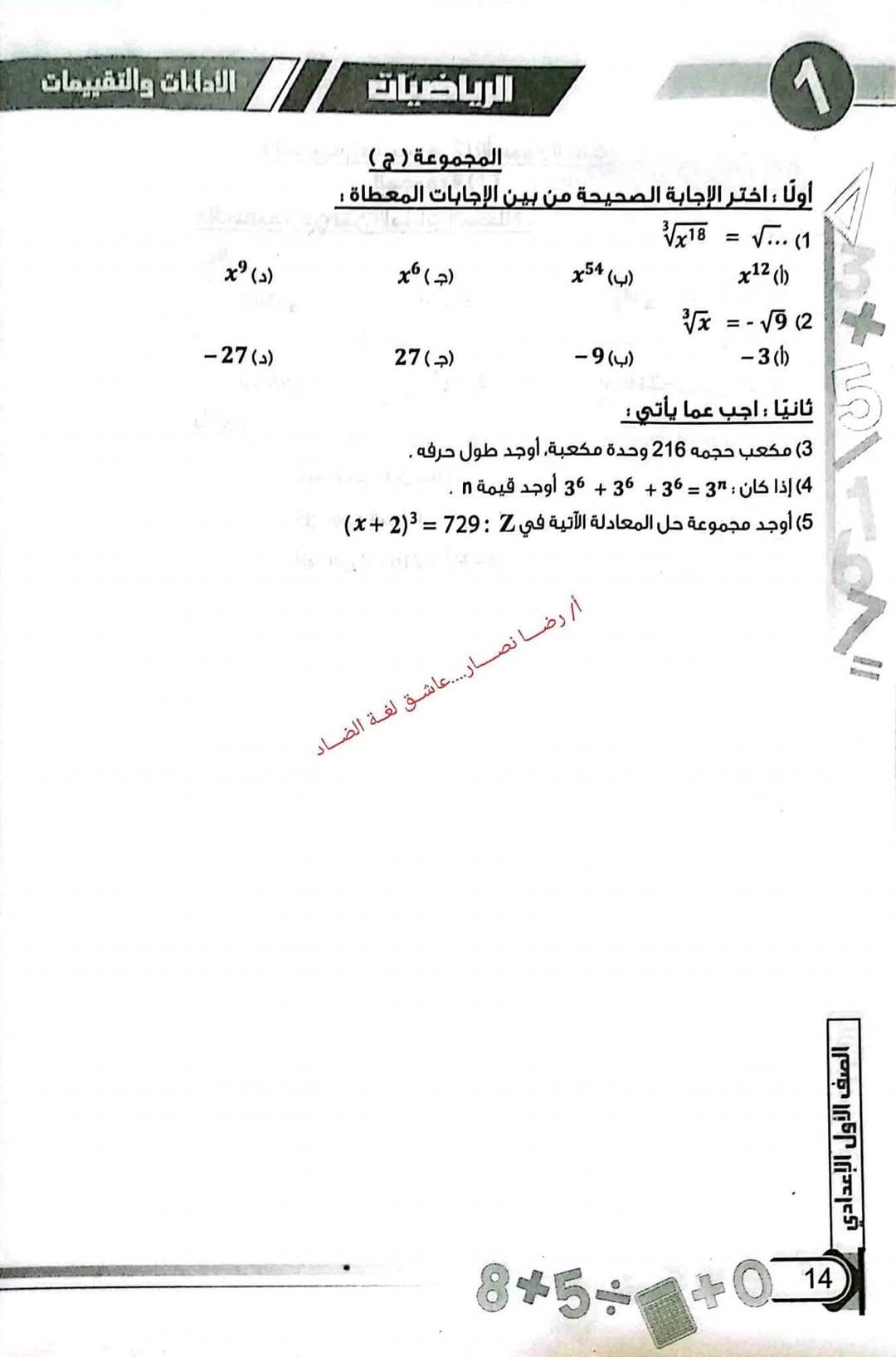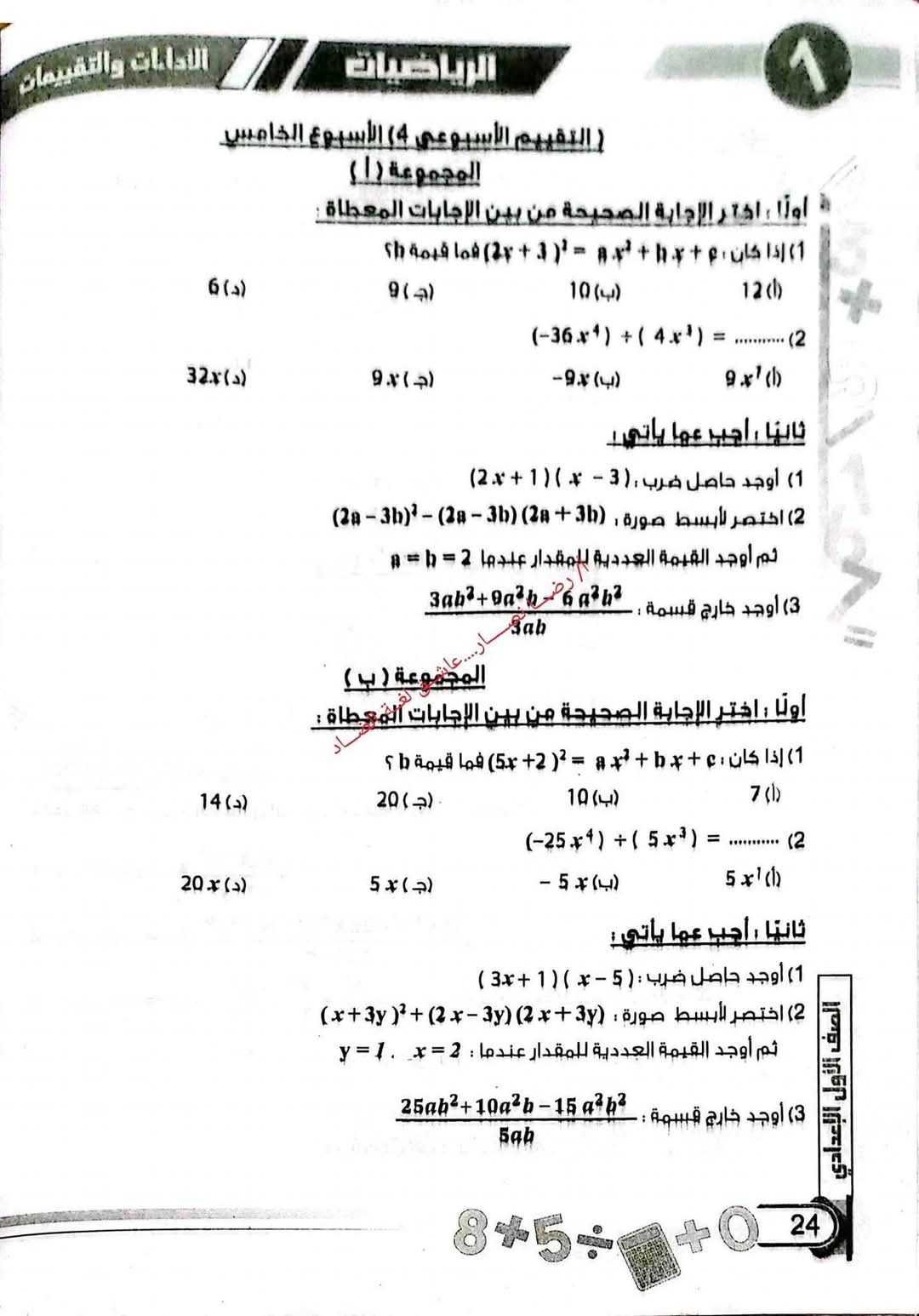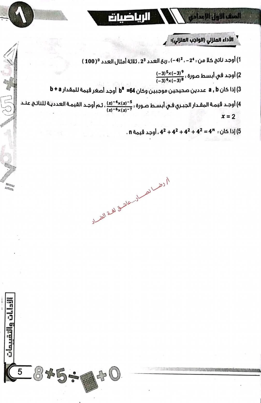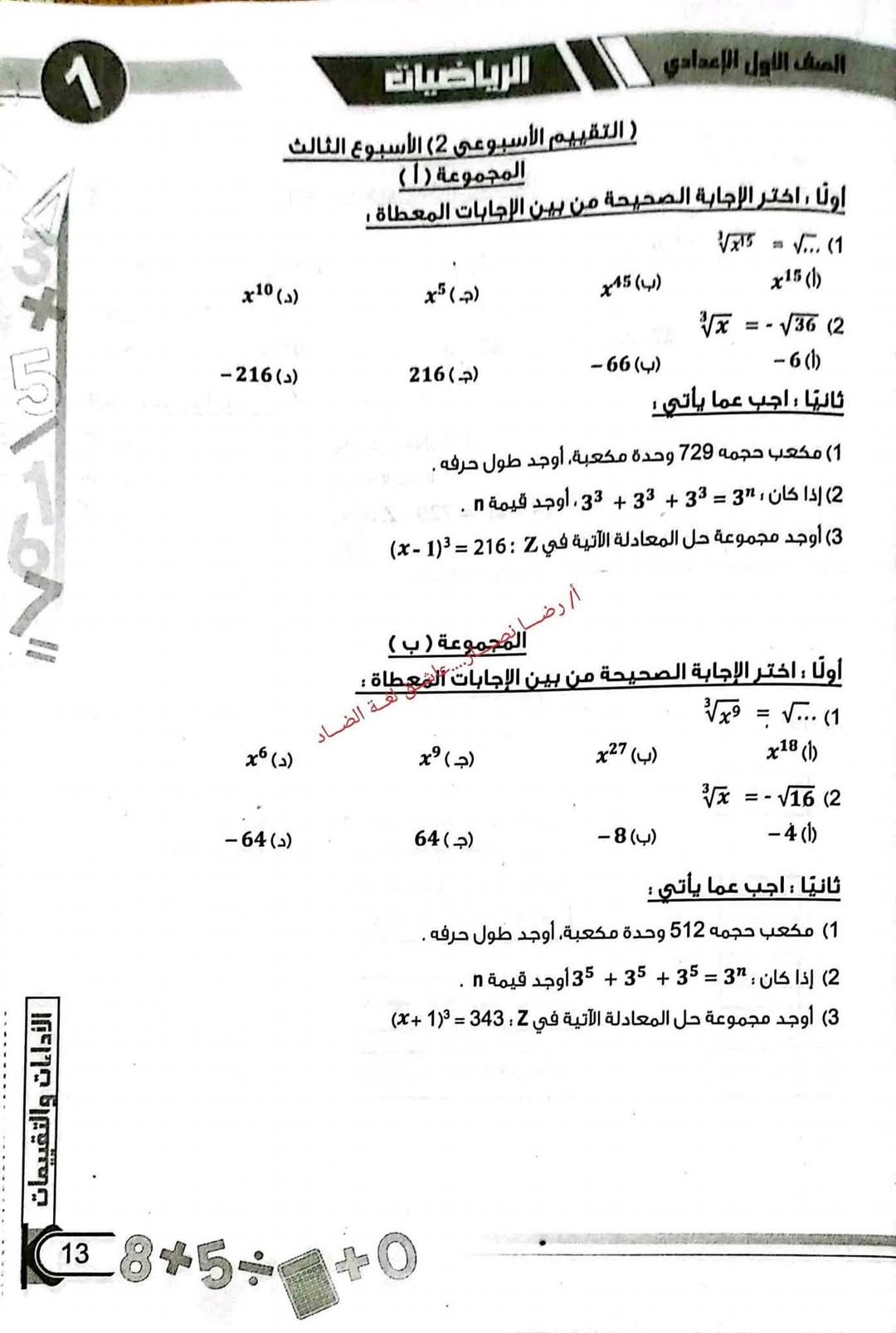كتاب التقييمات للصف الأول الإعدادي رياضيات pdf محلول
