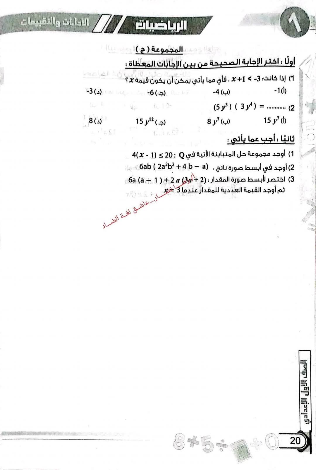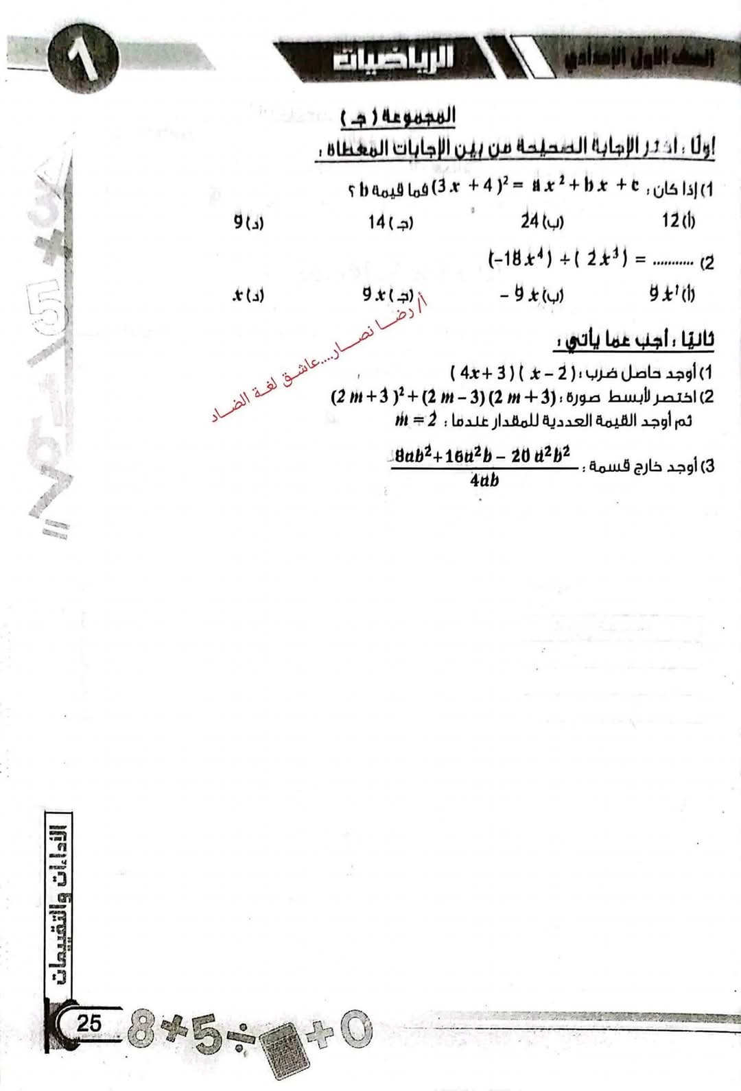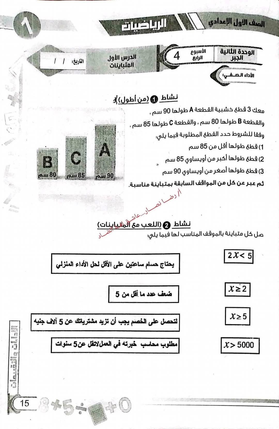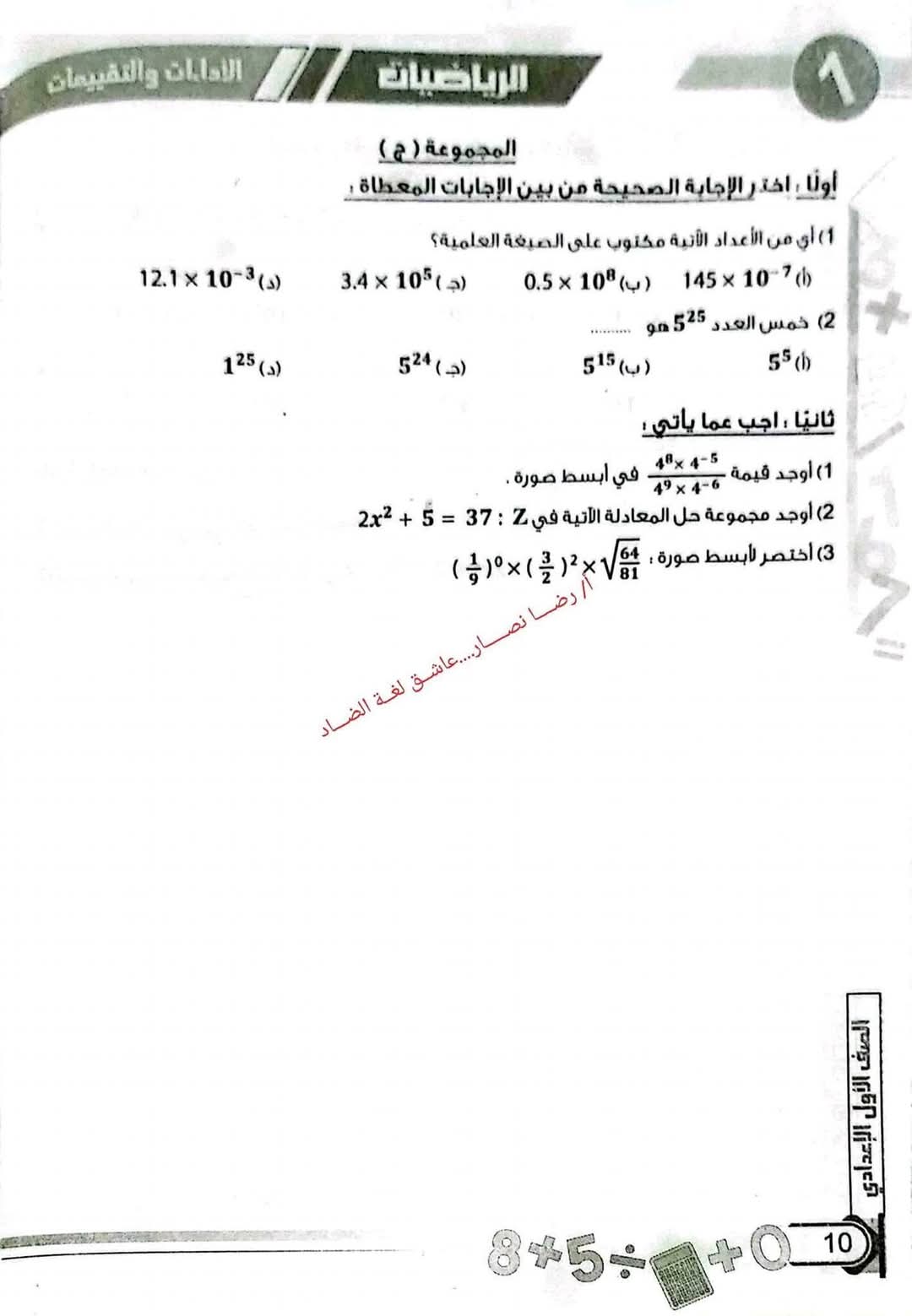 كتاب التقييمات للصف الأول الإعدادي رياضيات pdf محلول