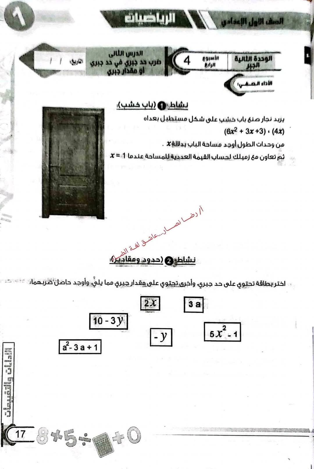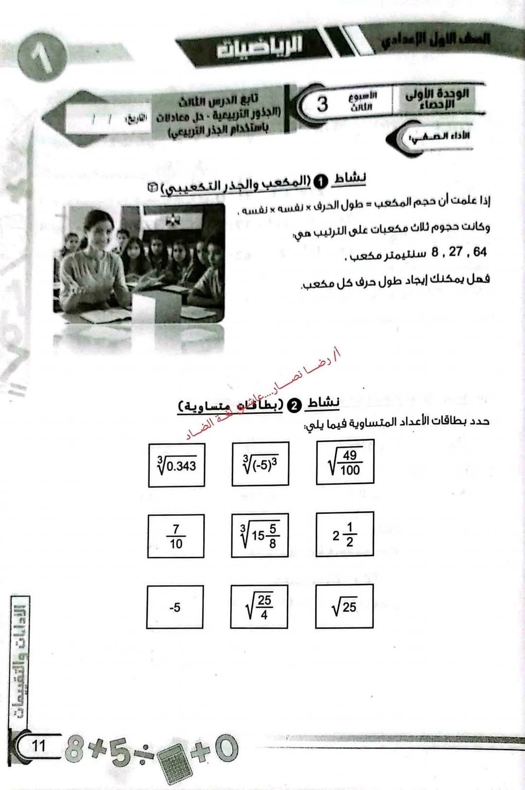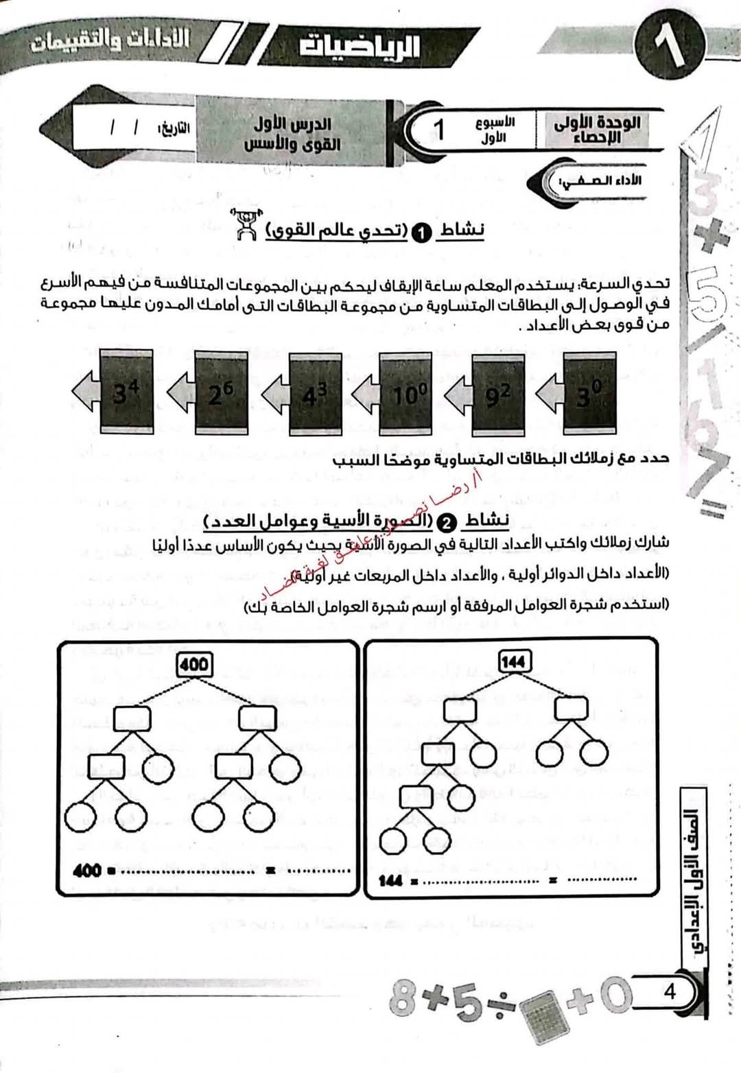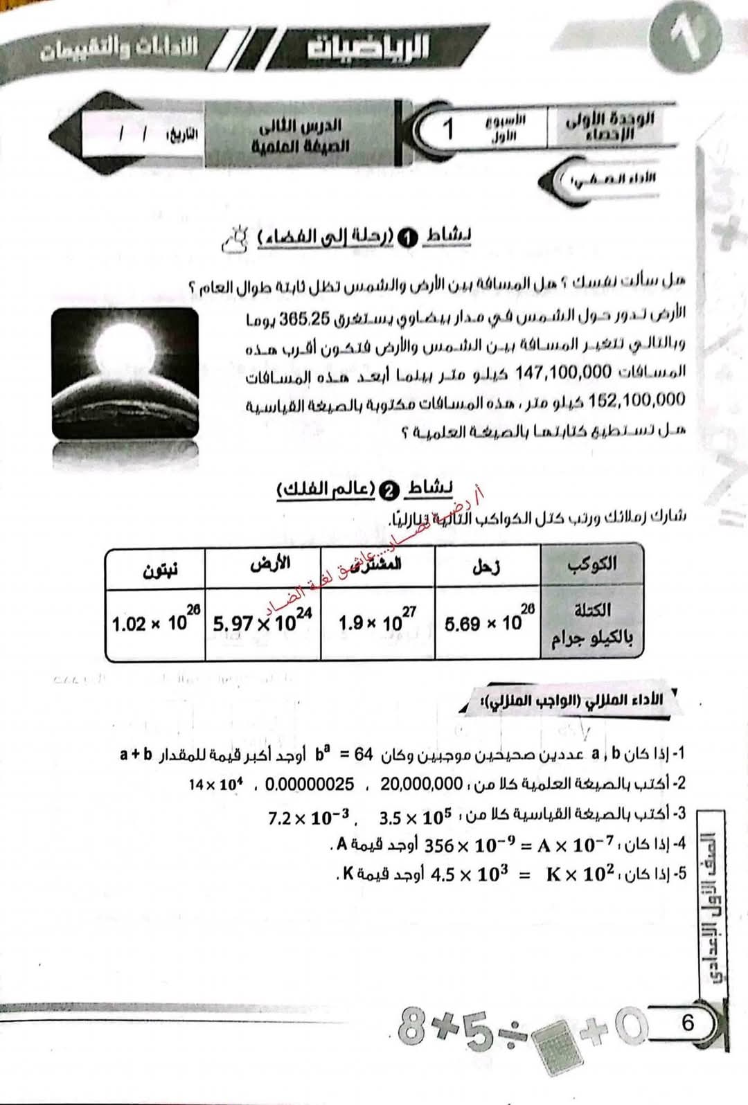 كتاب التقييمات للصف الأول الإعدادي رياضيات pdf محلول