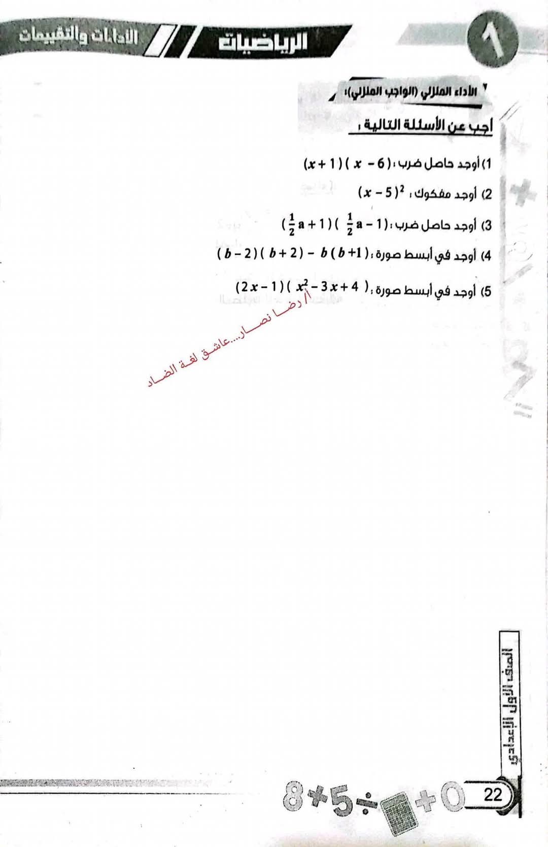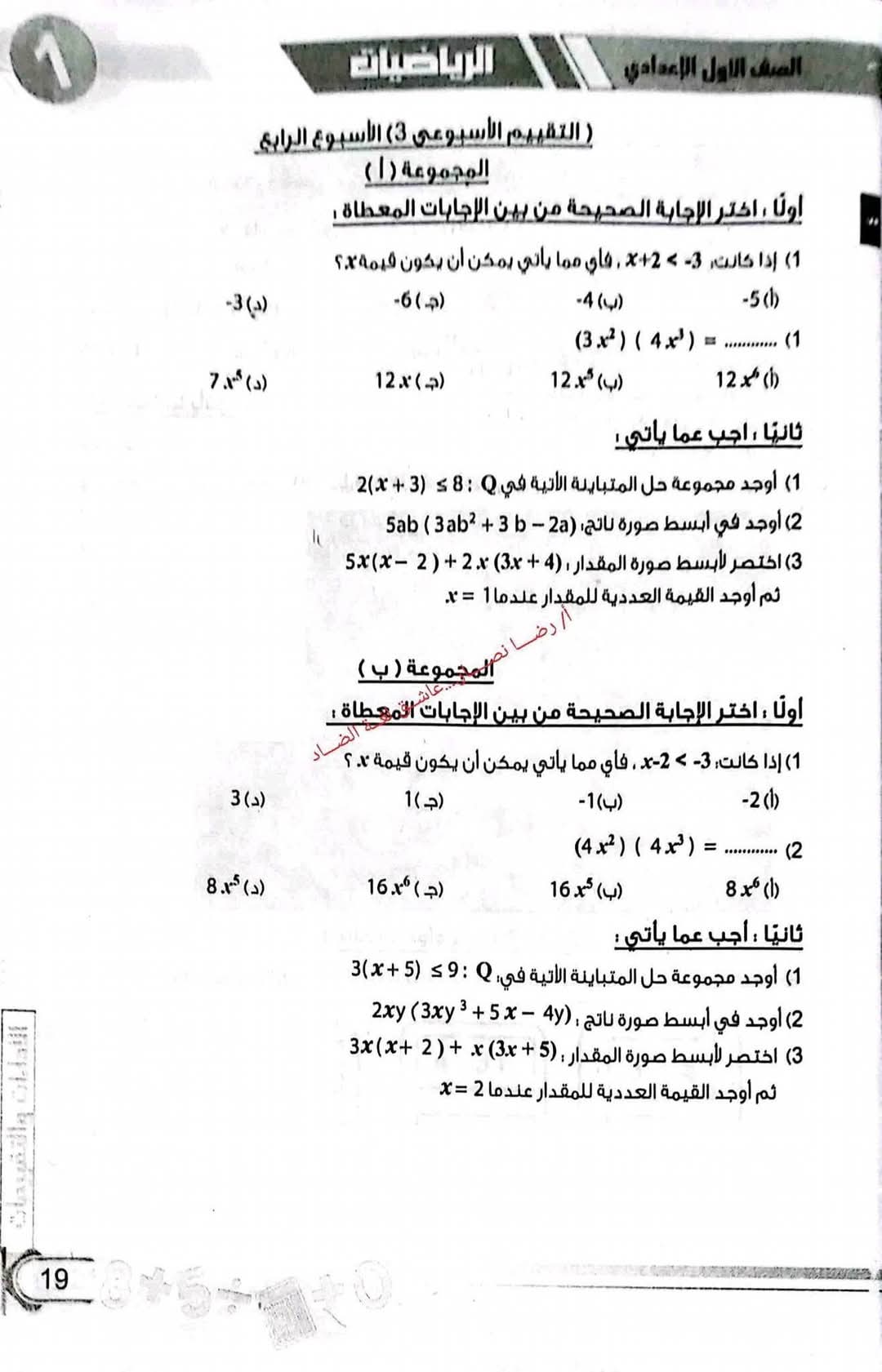 حل كتاب التقييمات للصف الأول الإعدادي رياضيات