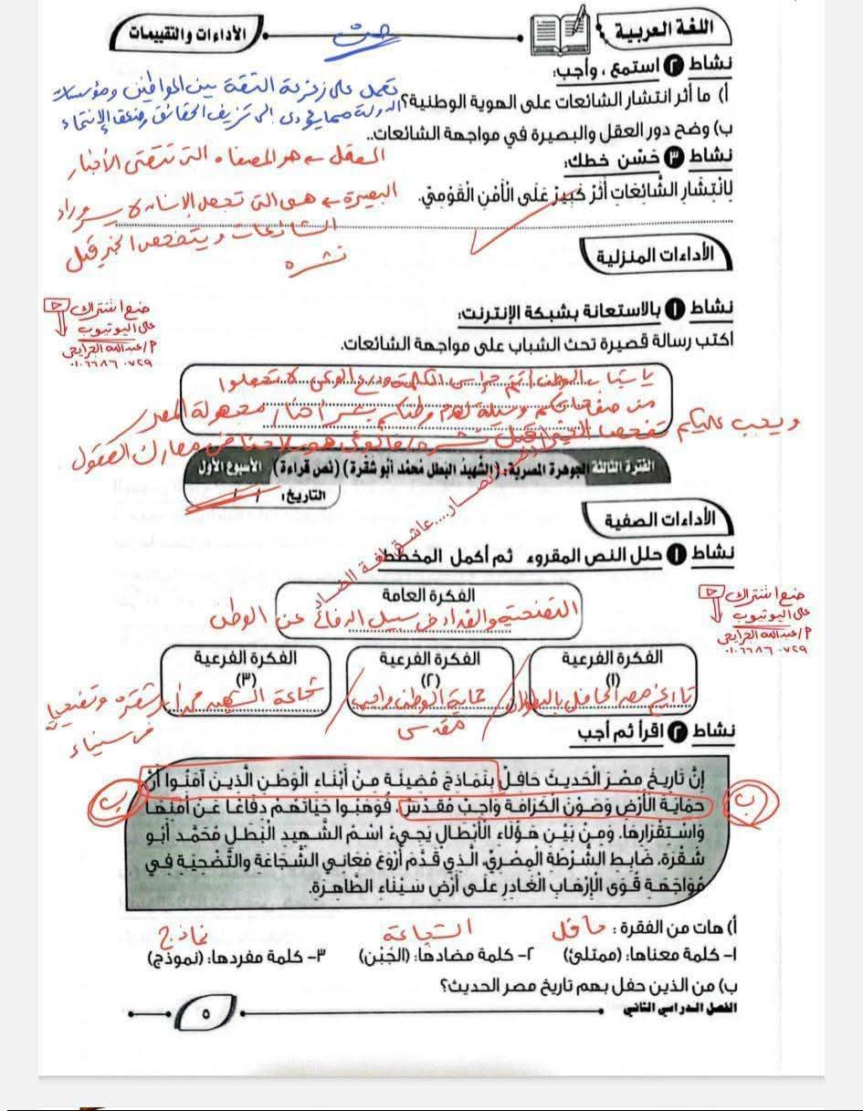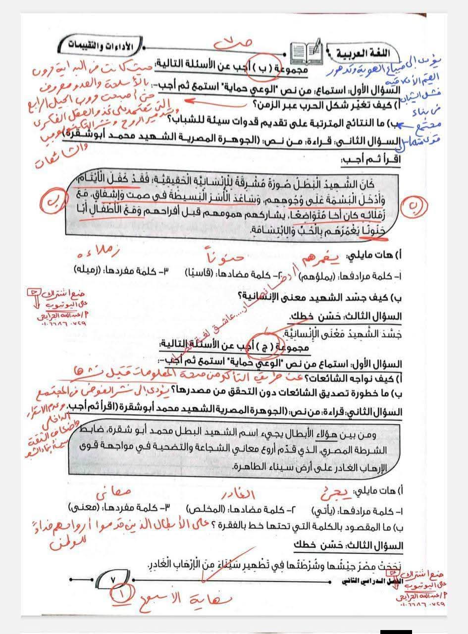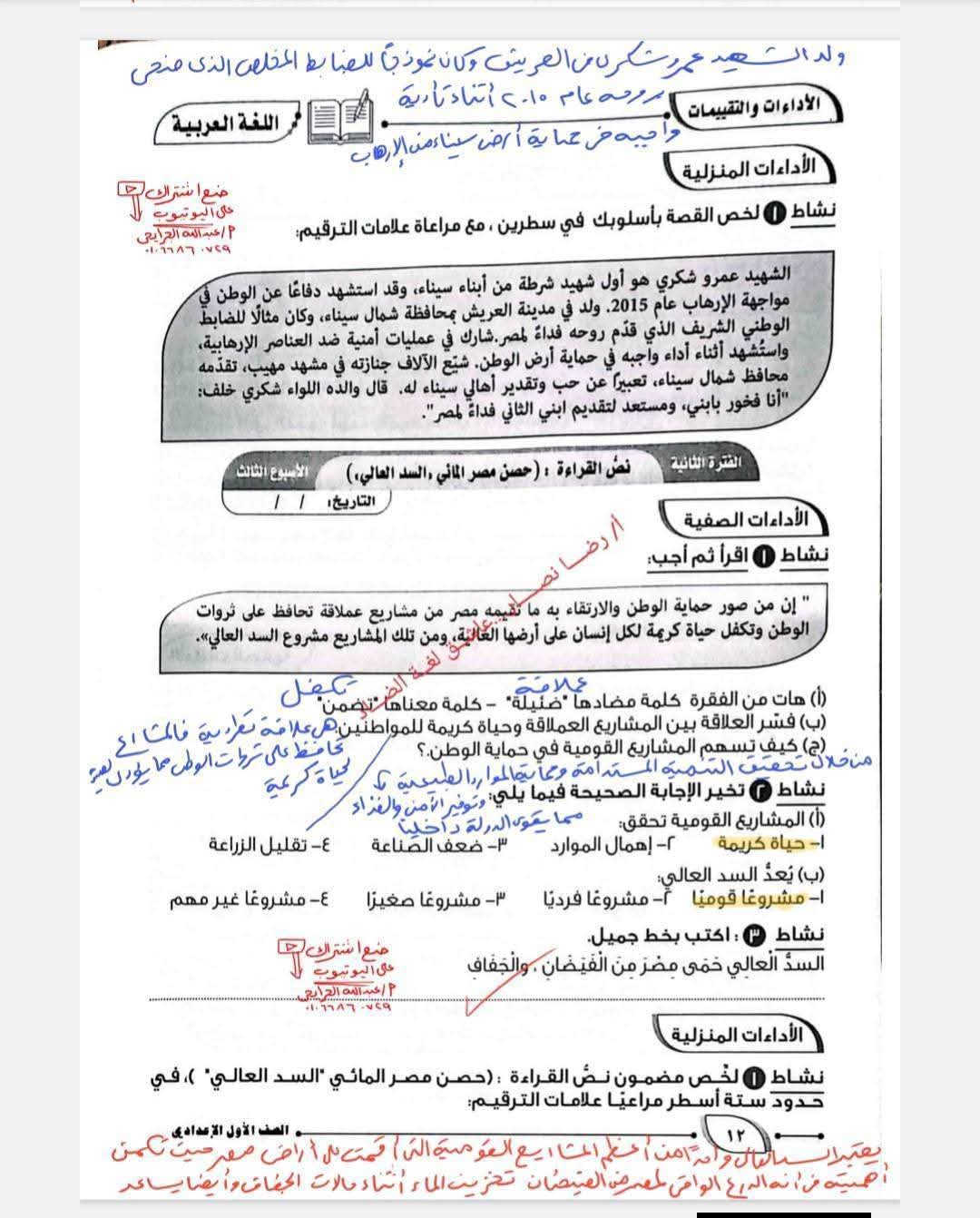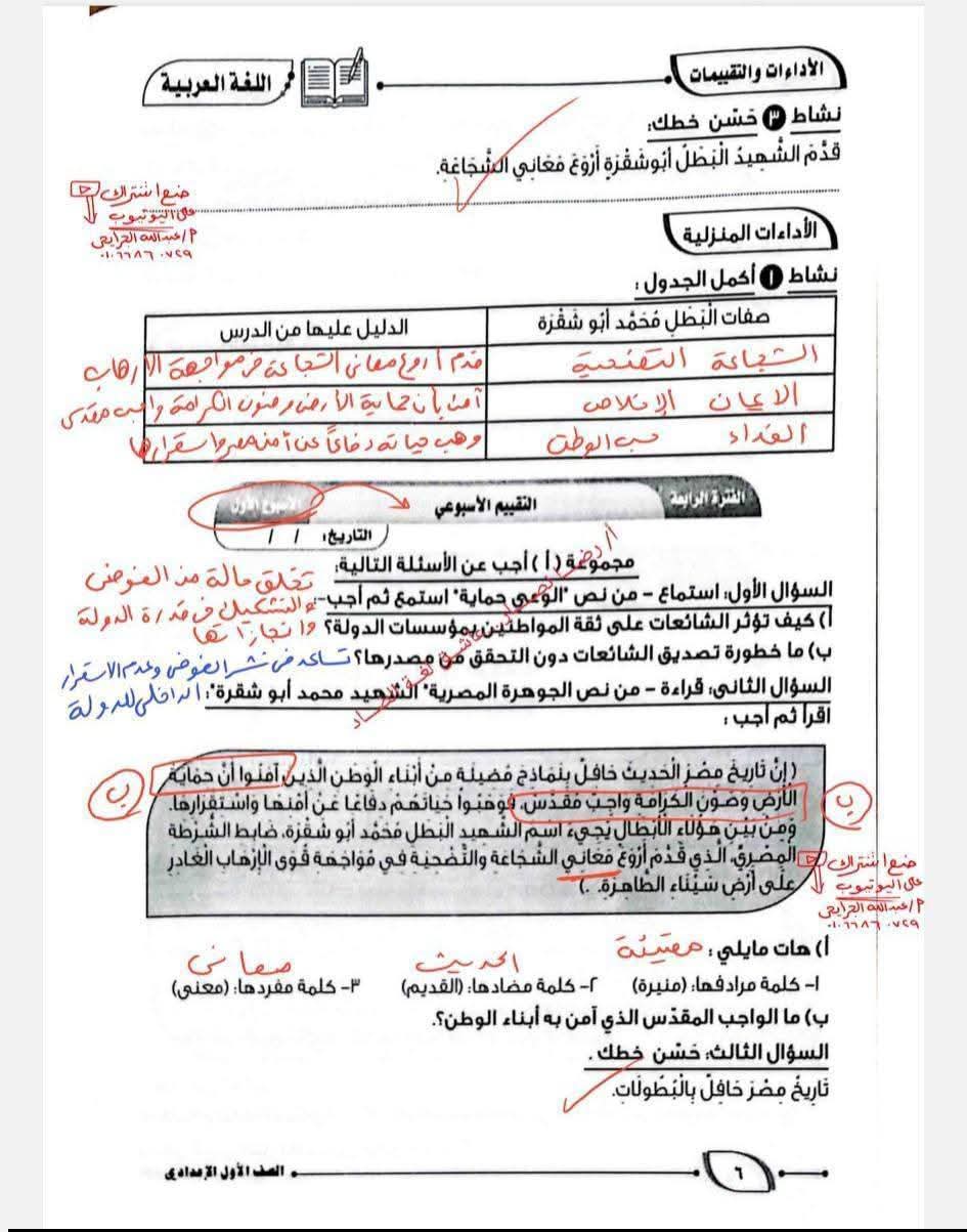 ويستطيع طلاب الصف الأول الإعدادي الإطلاع على حل كتاب التقييمات اللغة العربية الترم الثاني كالتالي: