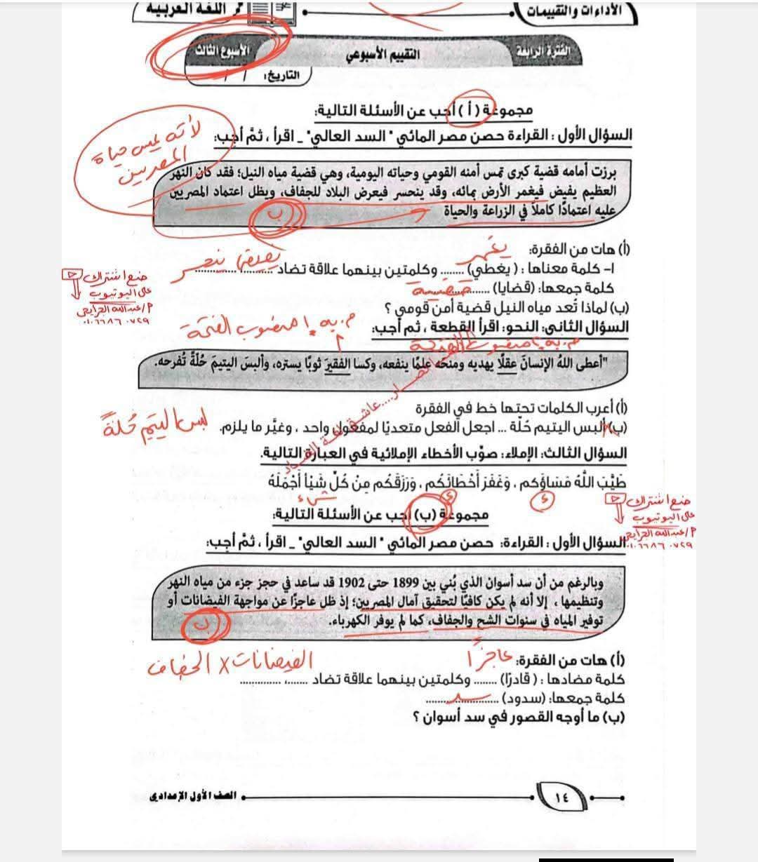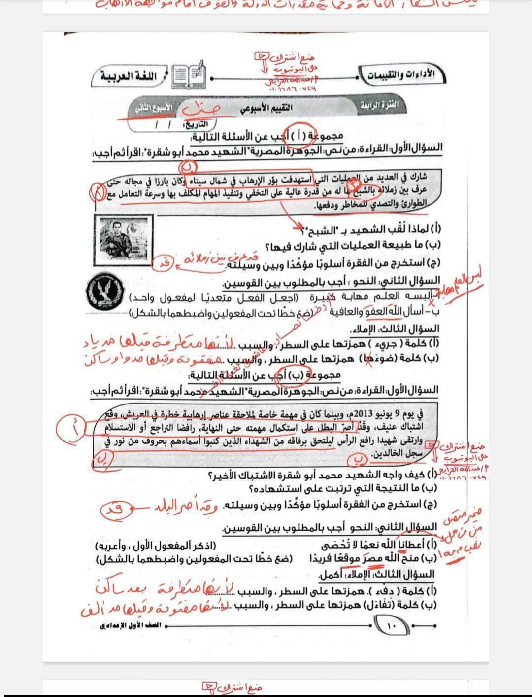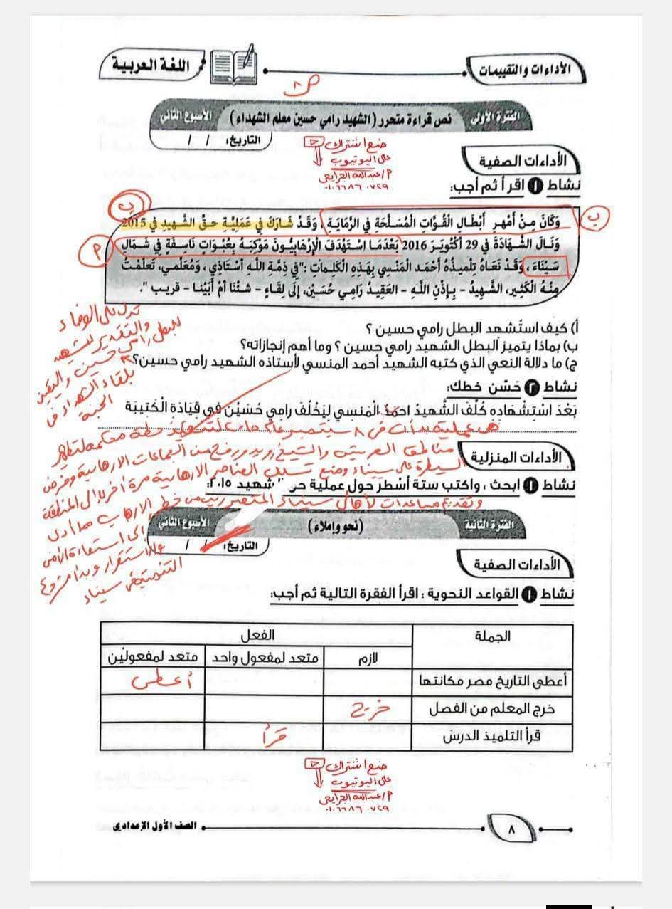 حل كتاب التقييمات للصف الأول الإعدادي اللغة العربية