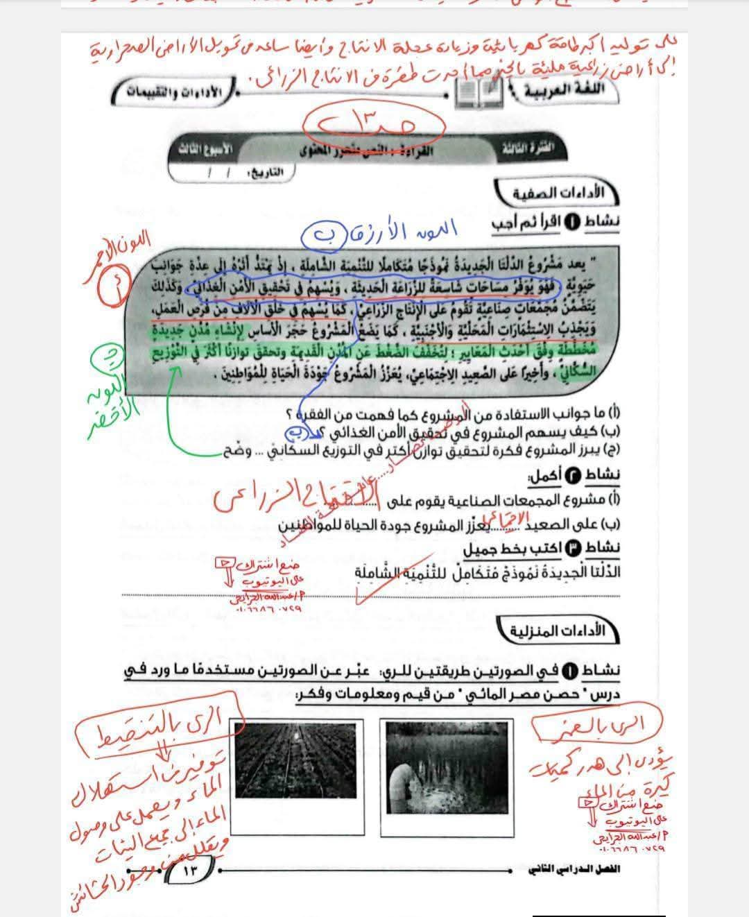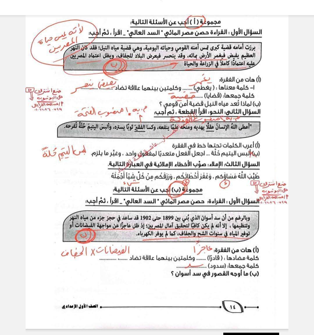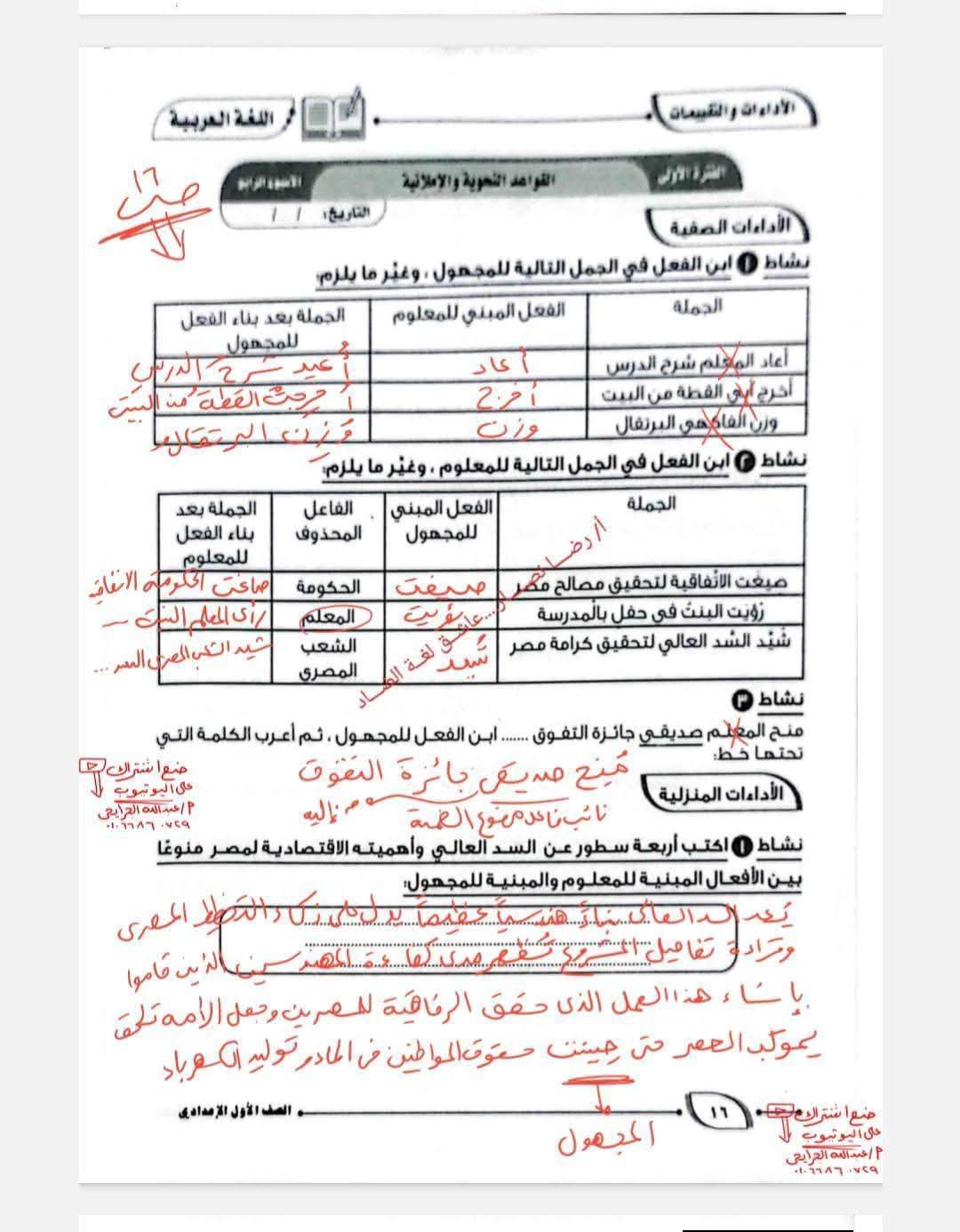 حل كتاب التقييمات للصف الأول الإعدادي اللغة العربية