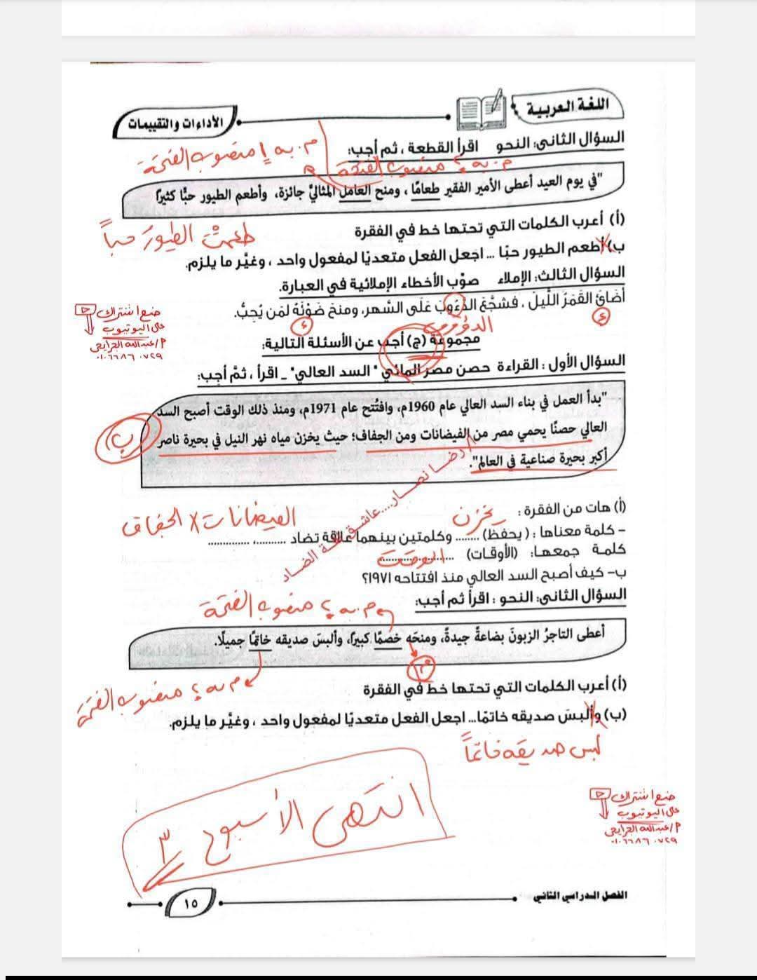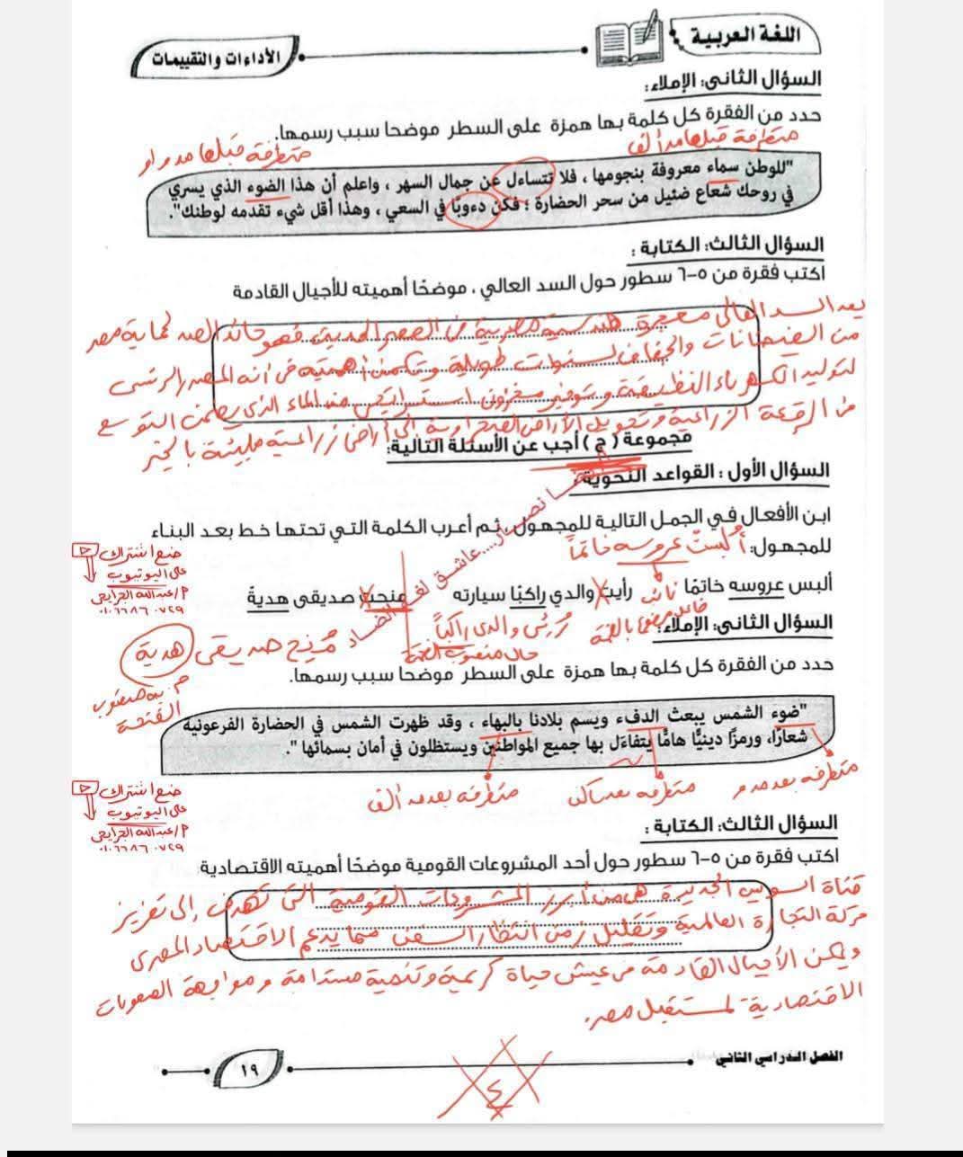 حل كتاب التقييمات للصف الأول الإعدادي اللغة العربية الترم الثاني