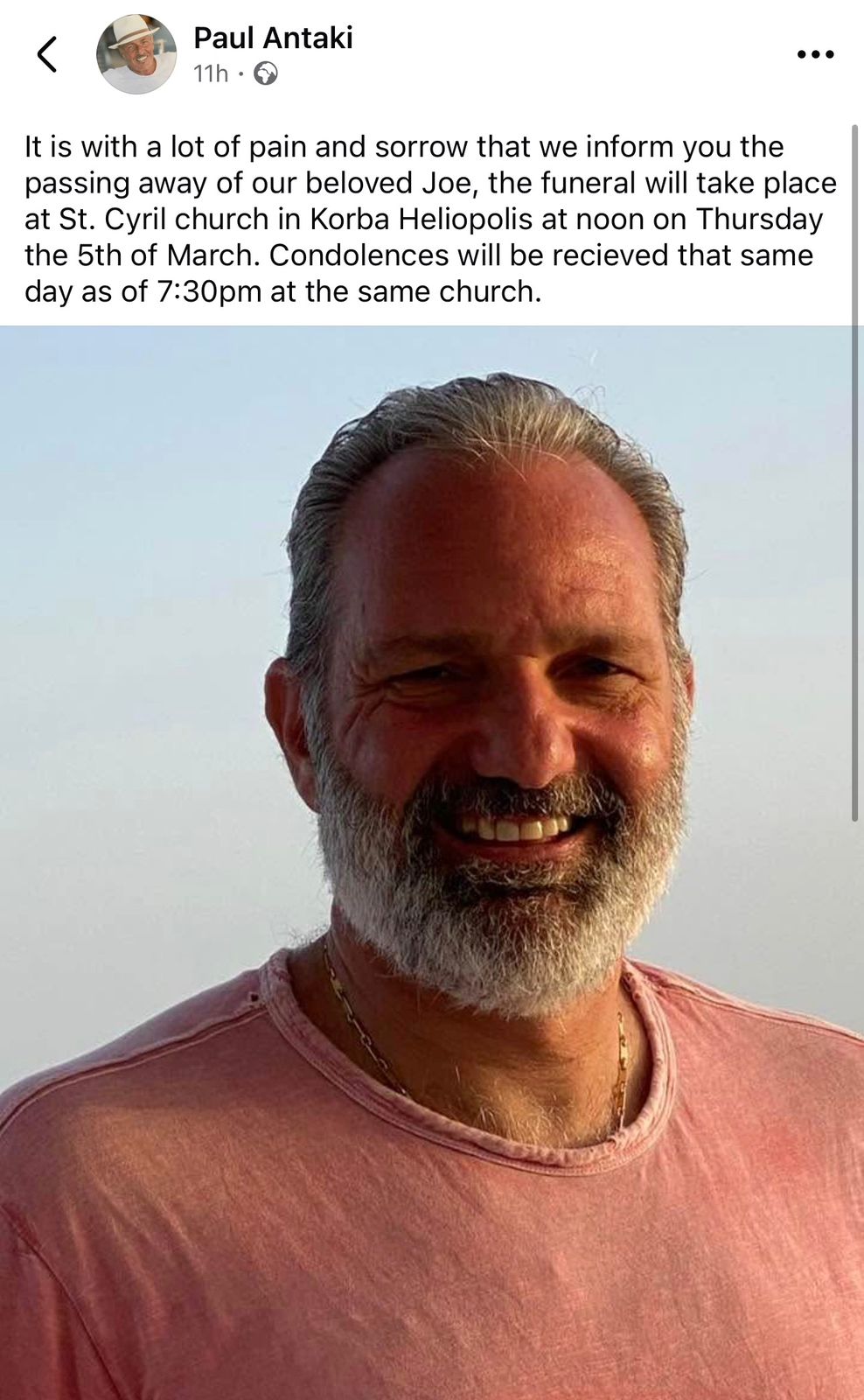 وكشف شقيق الراحل عن تفاصيل الجنازة وتلقي العزاء عبر منشور على حسابه الرسمي بموقع فيسبوك، موضحًا موعد ومكان التشييع.