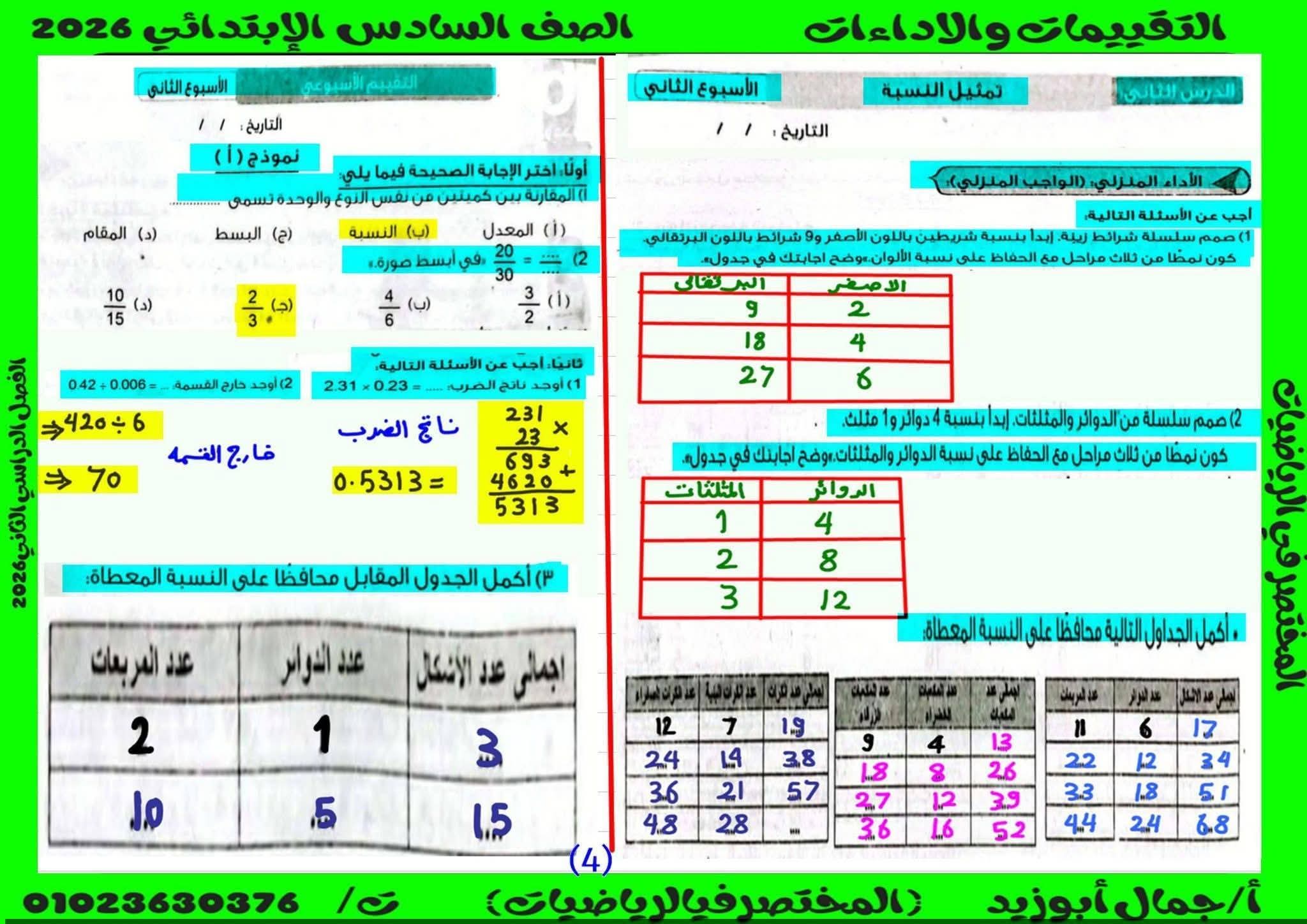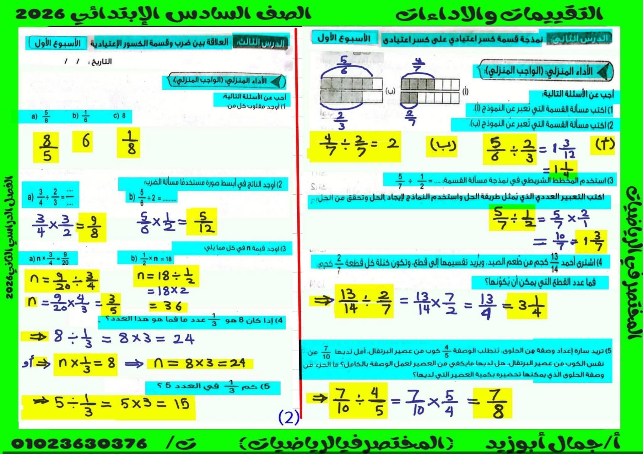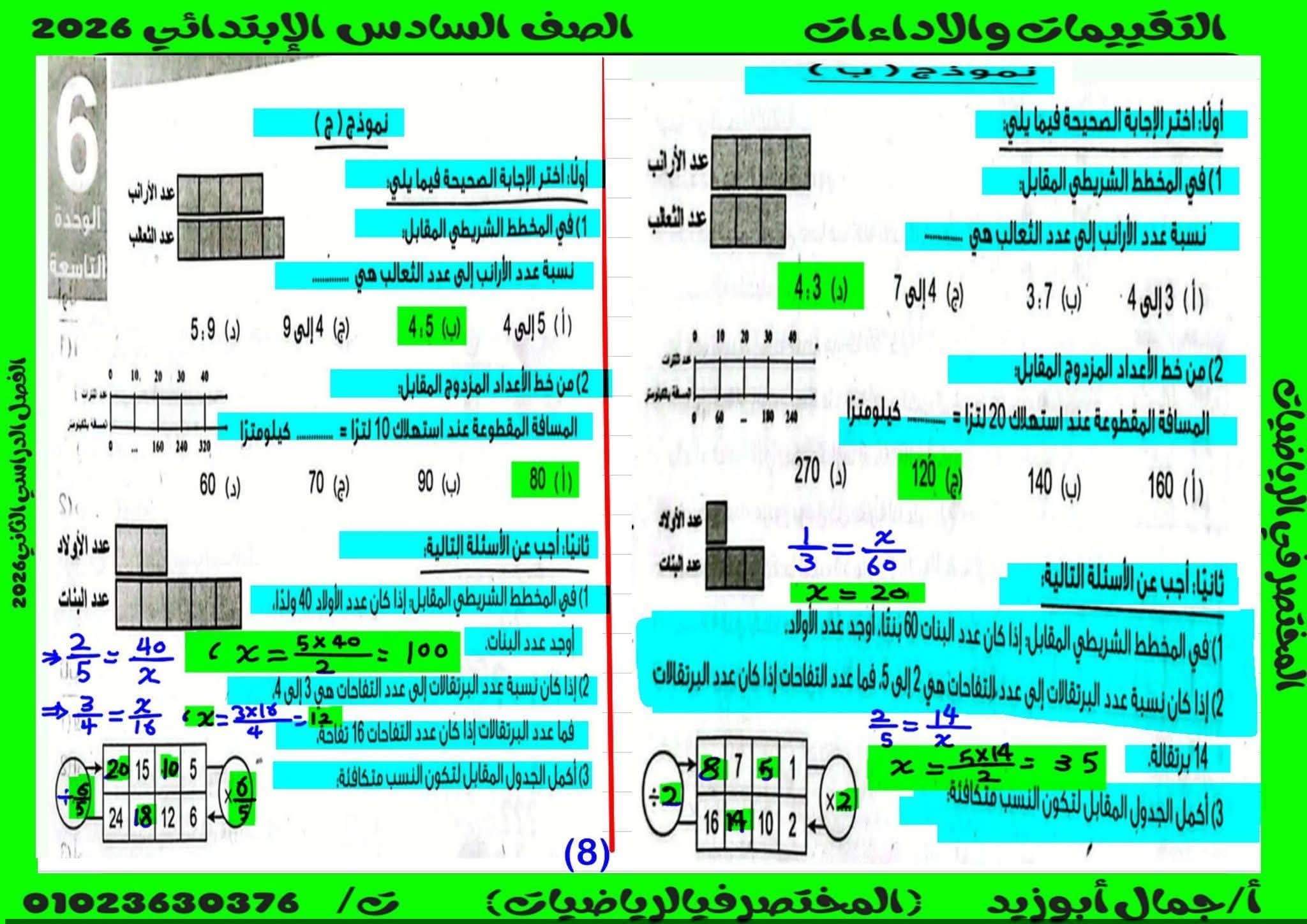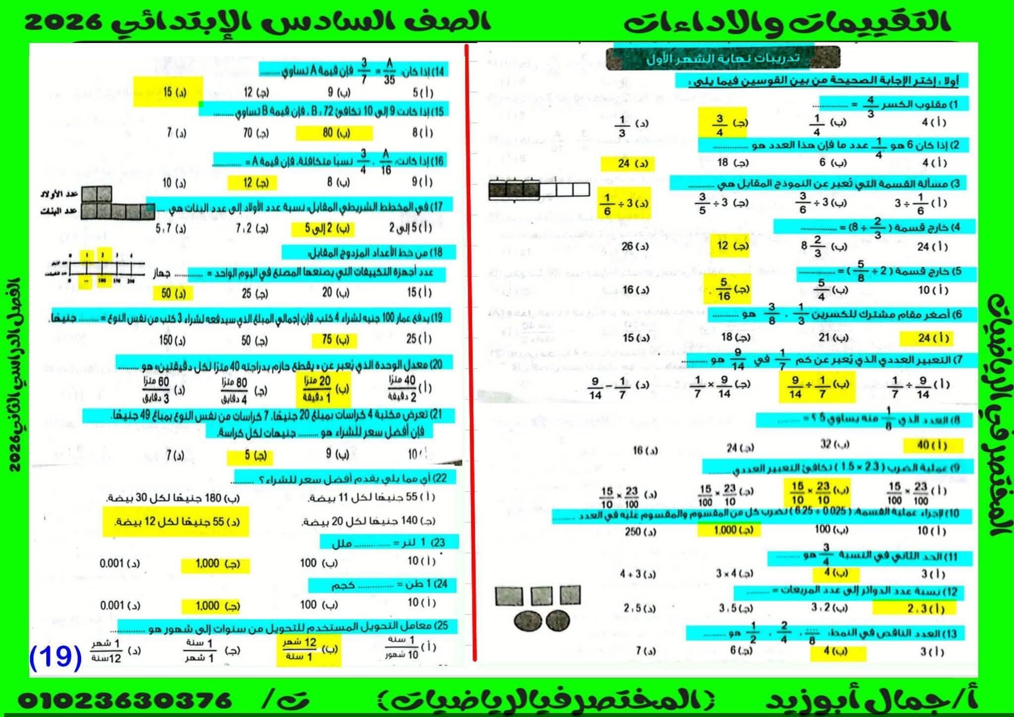 حل كتاب التقييمات للصف السادس الابتدائي رياضيات الترم الثاني كامل