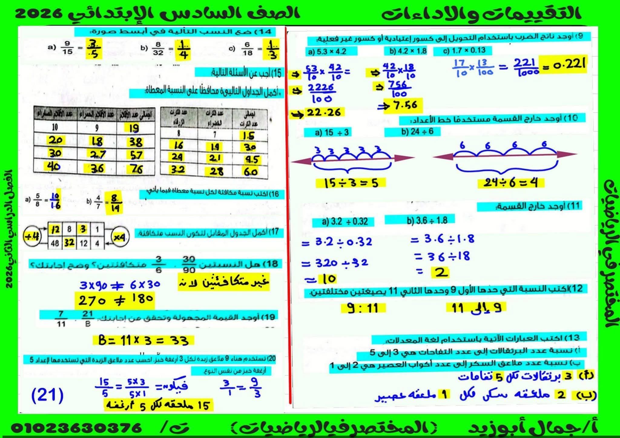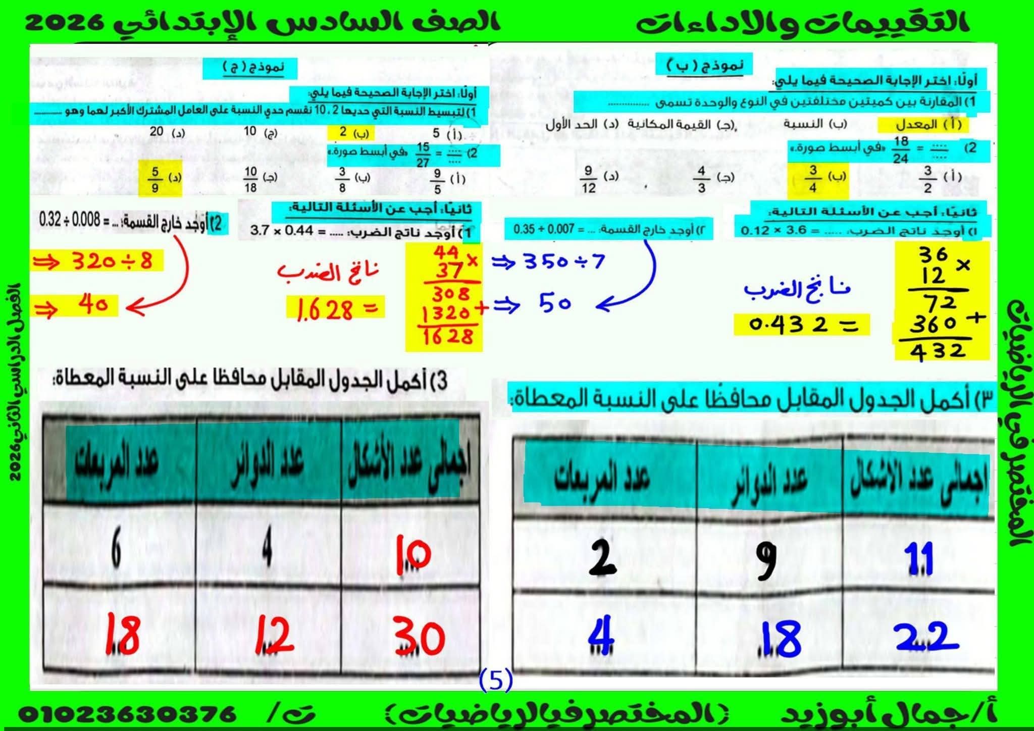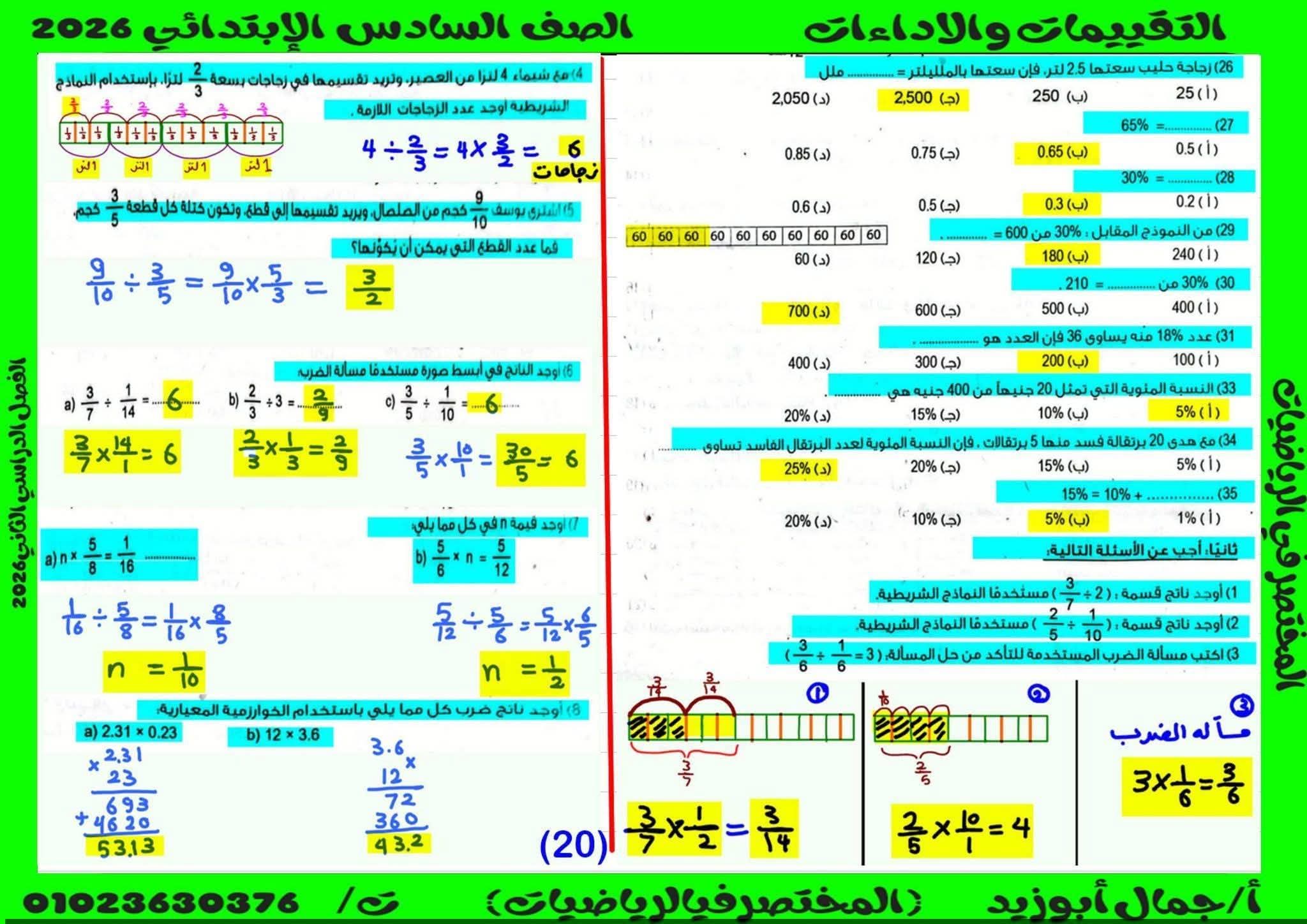 حل كتاب التقييمات للصف السادس الابتدائي رياضيات الترم الثاني كامل
