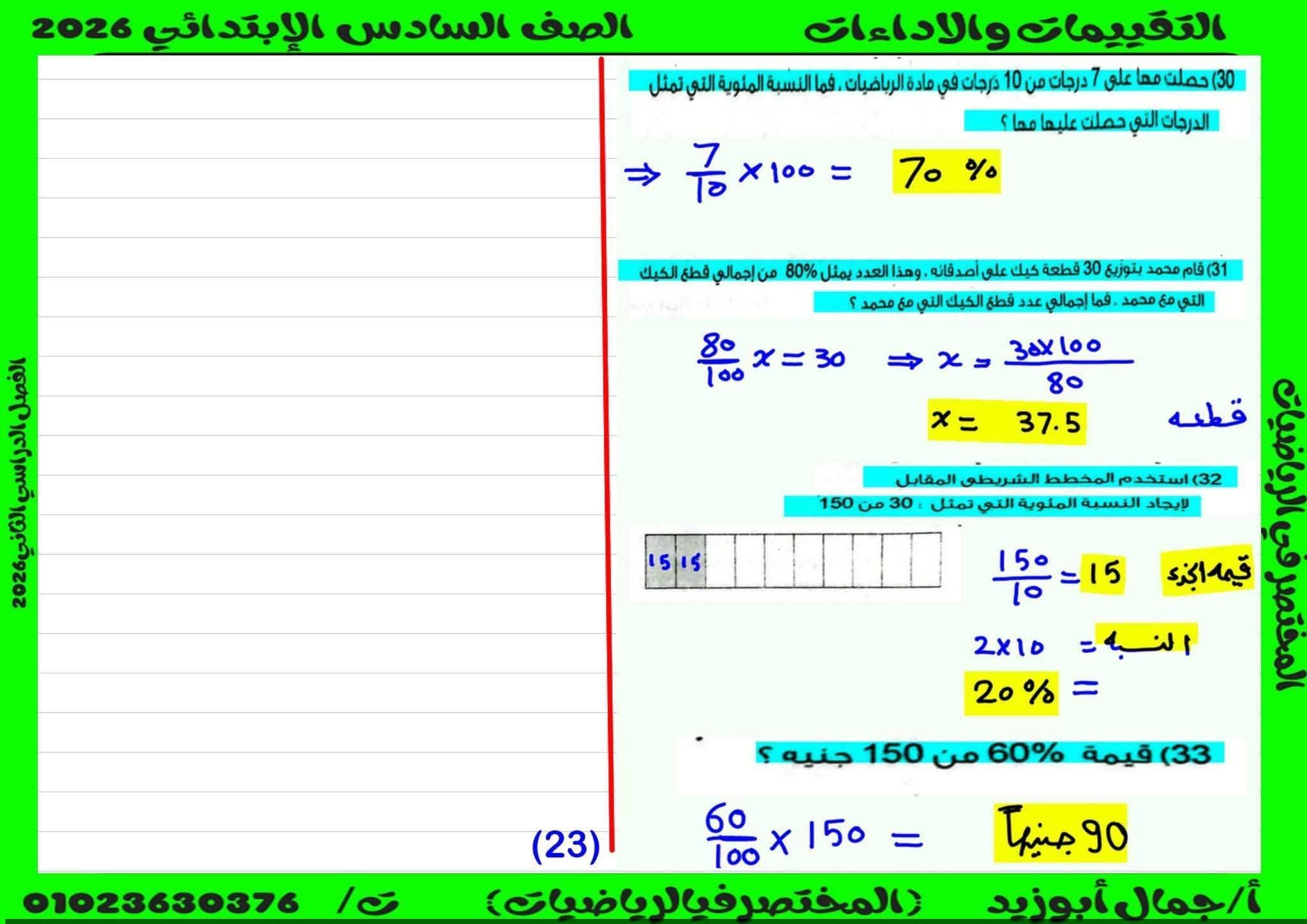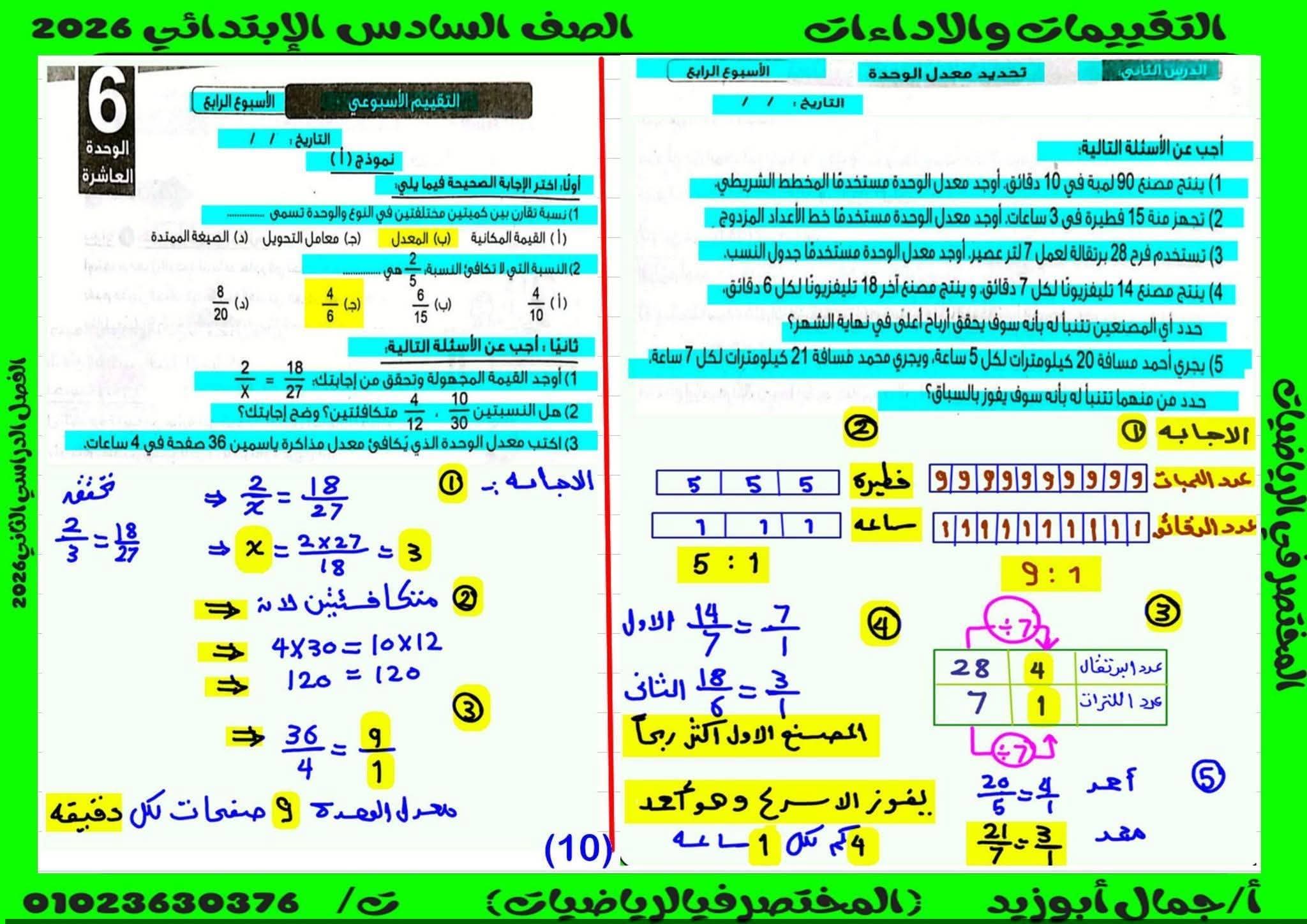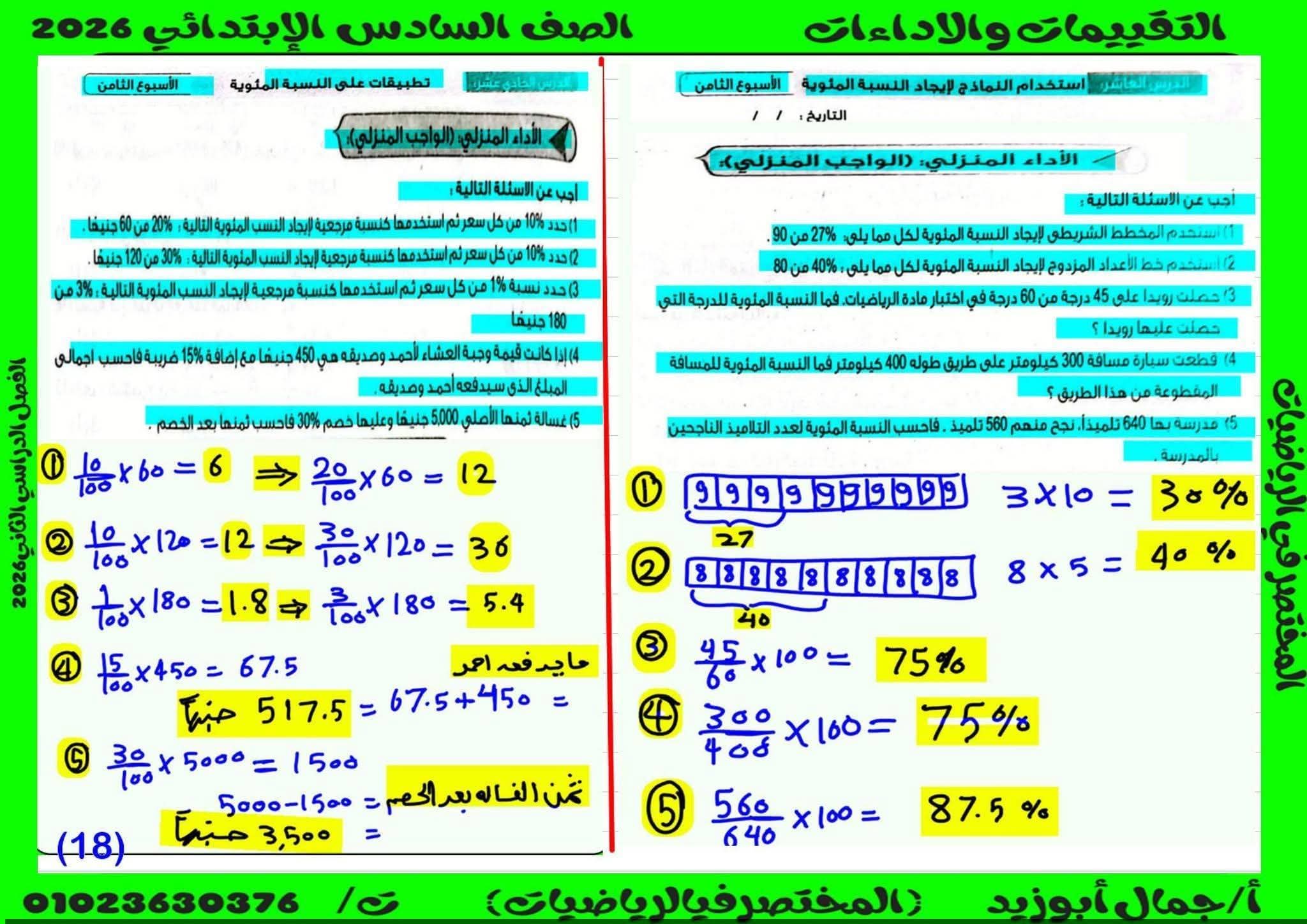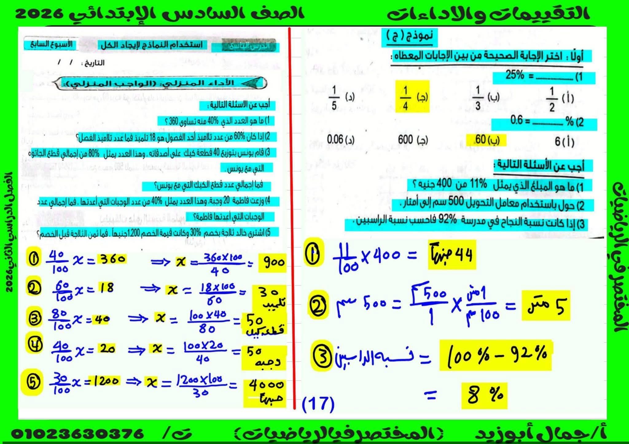 حل كتاب التقييمات للصف السادس الابتدائي رياضيات الترم الثاني كامل