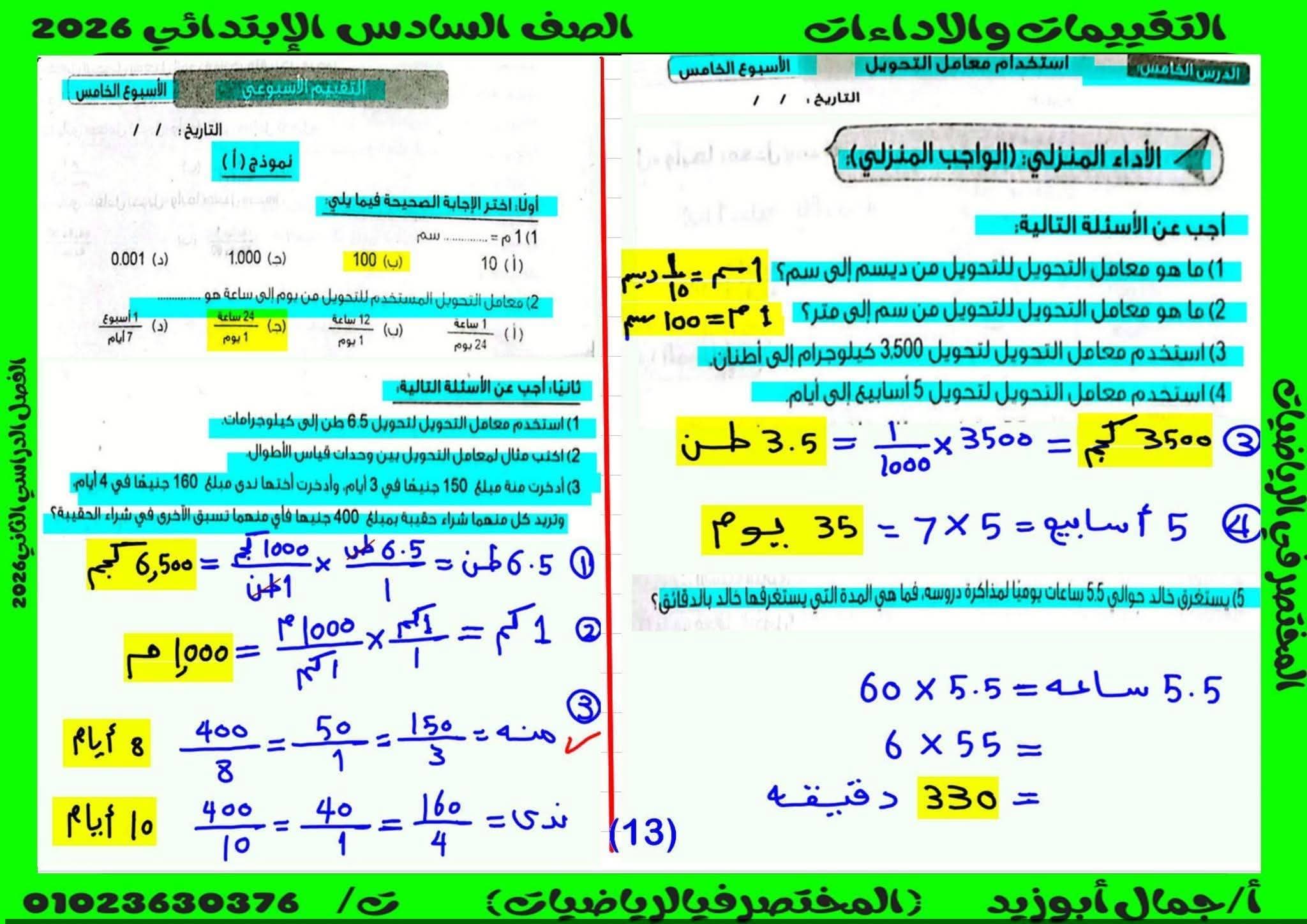 حل كتاب التقييمات للصف السادس الابتدائي الترم الثاني كامل