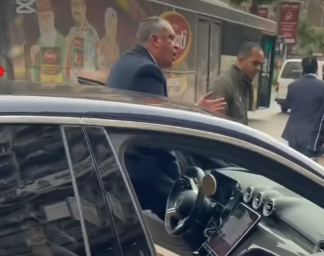 وظهر بالفيديو شخص وهو يركب سيارة مرسيدس وعلى زجاجها الأمامي ملصق لمجلس النواب، وهو يعتدي على شاب بعد تحطيم سيارته.