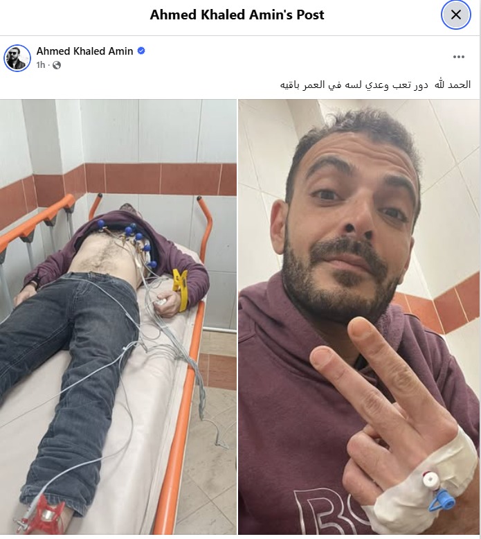 ونشر أحمد خالد أمين صورًا له وهو على فراش المرض عبر “فيسبوك”، وعلق عليها: “الحمد لله دور تعب وعدى.. لسه في العمر بقية”.