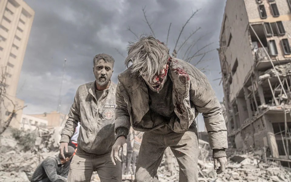 وعكست هذه المشاهد الهجمات التي استهدفت مستشفى غاندي في طهران والعديد من المرافق الطبية الأخرى في جميع أنحاء البلاد، إن تدمير المستشفيات يعني أن الجرحى ليس لديهم مكان يذهبون إليه، بينما تحمل الممرضات الأطفال الخدج عبر ممرات مليئة بالدخان مع سقوط القنابل على أجنحة الولادة.