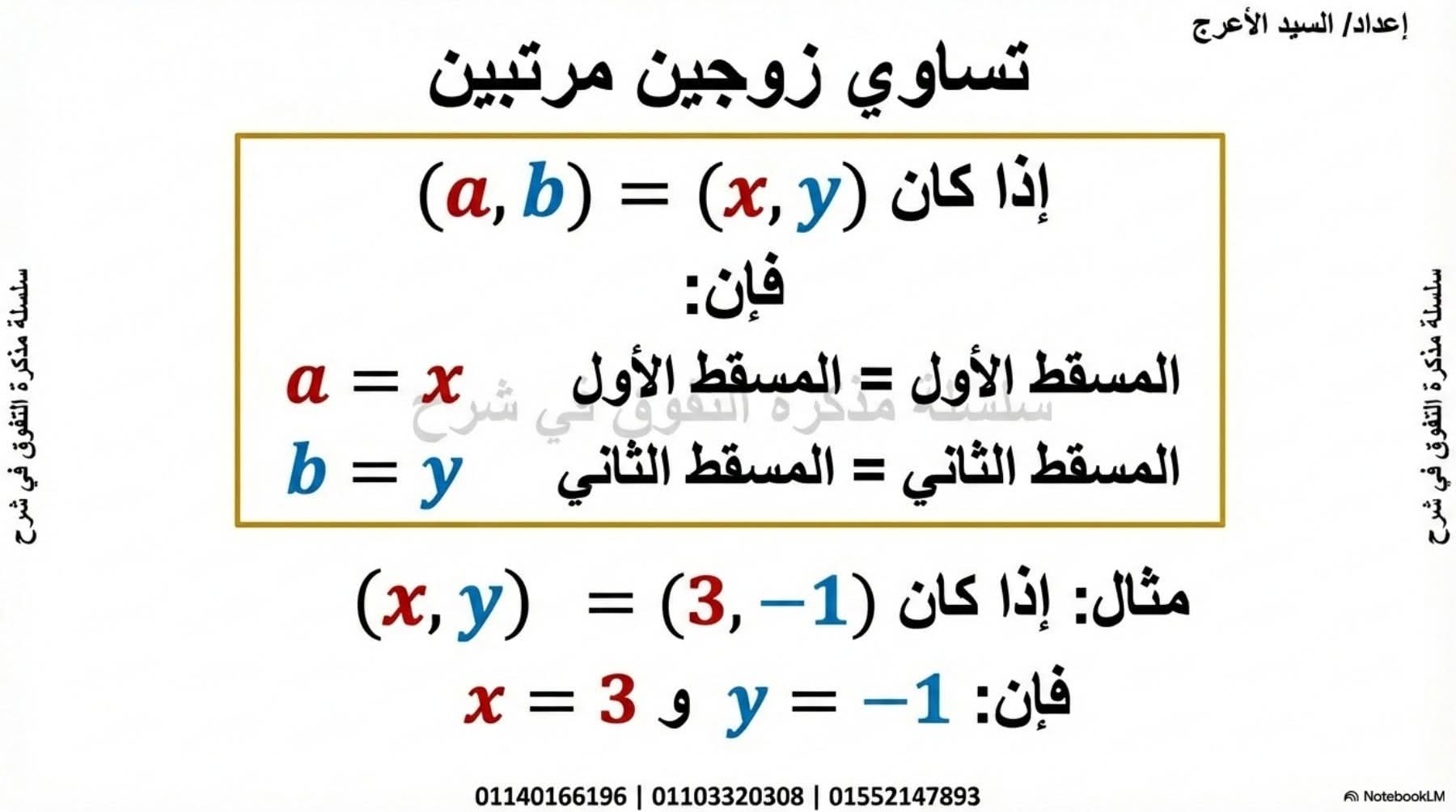 شرح الدرس الأول الرياضيات للصف الثاني الإعدادي جبر