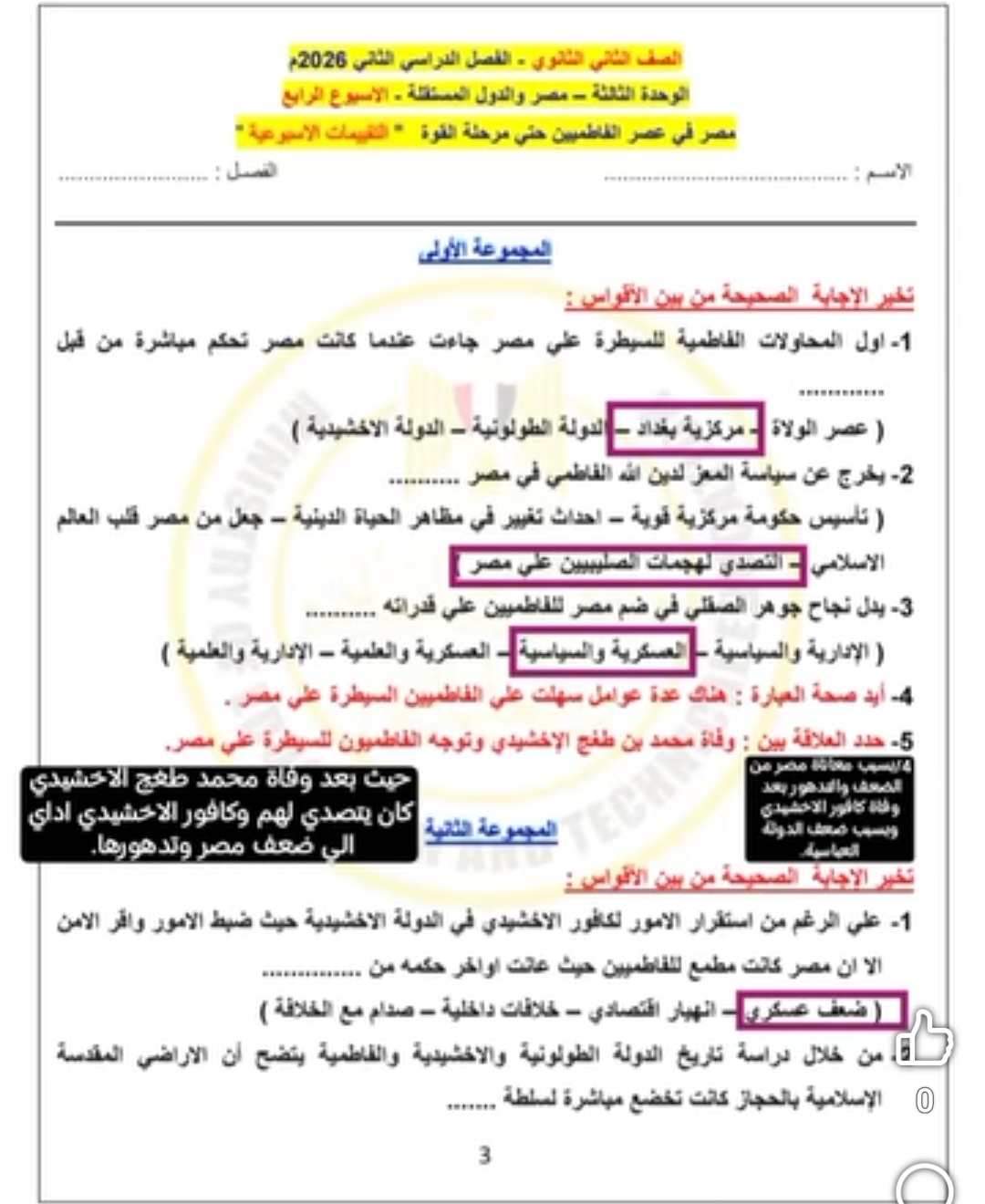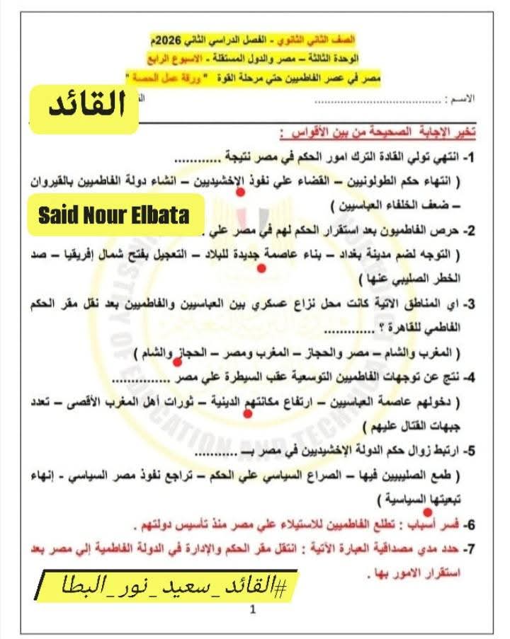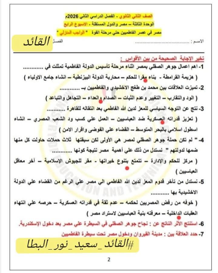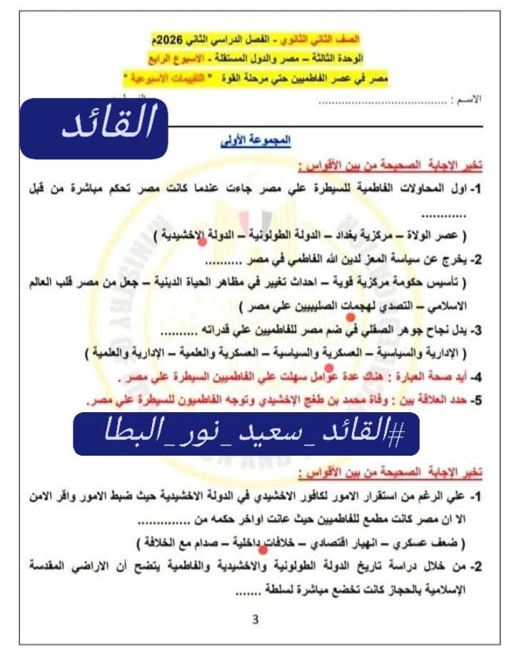 ويستطيع طلاب الصف الثاني الثانوي الاطلاع على حل التقييم الأسبوعي في مادة التاريخ كالتالي: