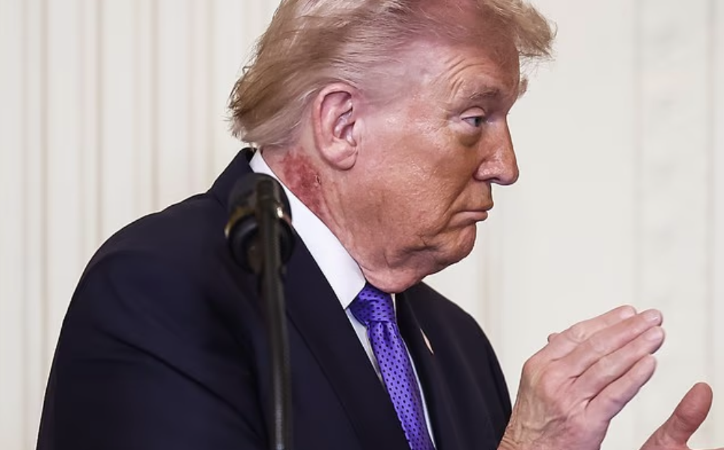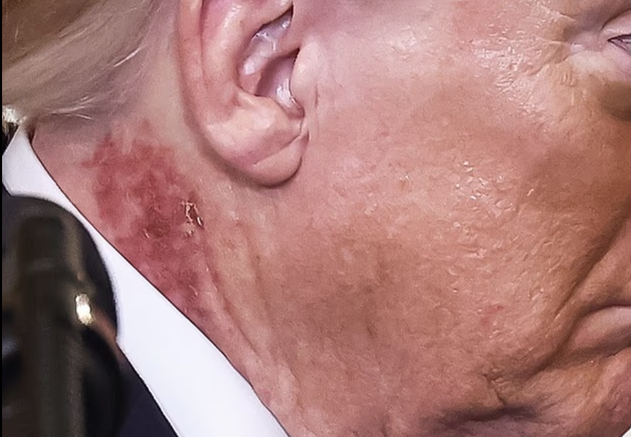 تزايدت التكهنات منذ ظهور الرئيس الأمريكي دونالد ترامب في البيت الأبيض هذا الأسبوع بطفح جلدي أحمر فاقع على الجانب الأيمن من رقبته.