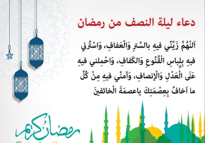 دعاء ليلة النصف من رمضان مكتوب 2026