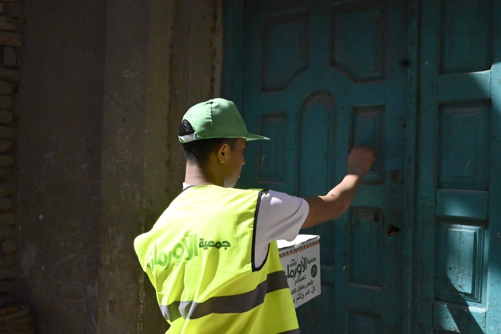 صورة أثناء توزيع الكراتين