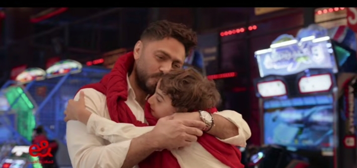 وفاجأ تامر حسني، جمهوره باصطحاب نجليه أمايا وآدم معه في الإعلان، في مشاهد عائلية توحي بالأمان والدفء الأسري.