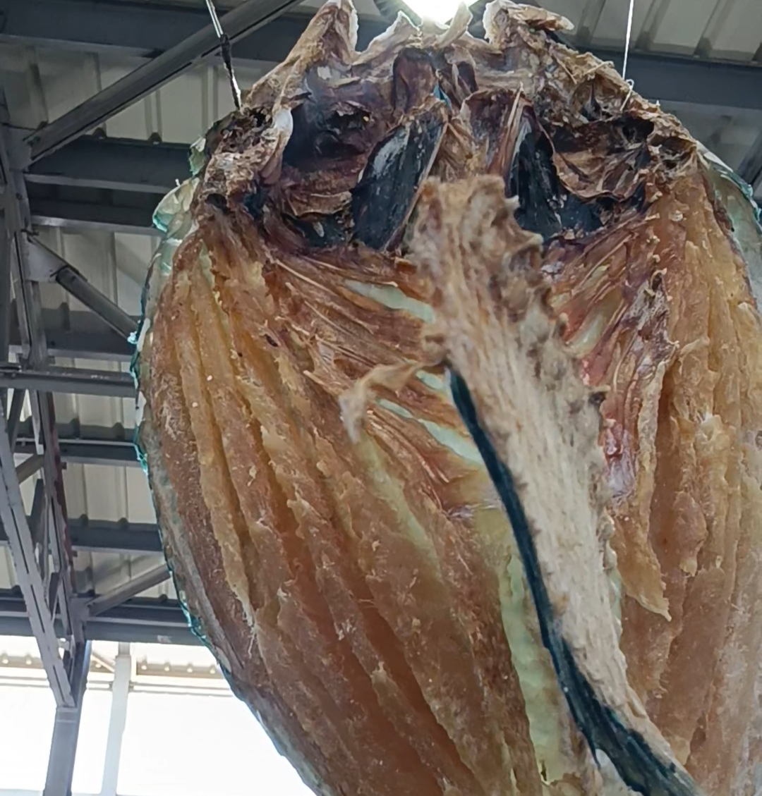 وأضاف أن الأسماك تُنظف جيدًا وتُغسل بماء البحر، ثم تُشَرَّح من الداخل وتُملح الفراغات بين اللحوم، مع استخدام ملح خاص لهذه الطريقة.