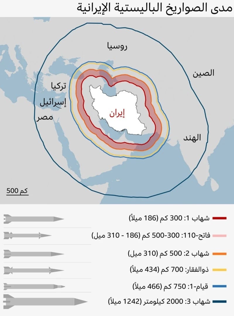 قدرة الصواريخ الإيرانية على بلوغ الخليج وإسرائيل