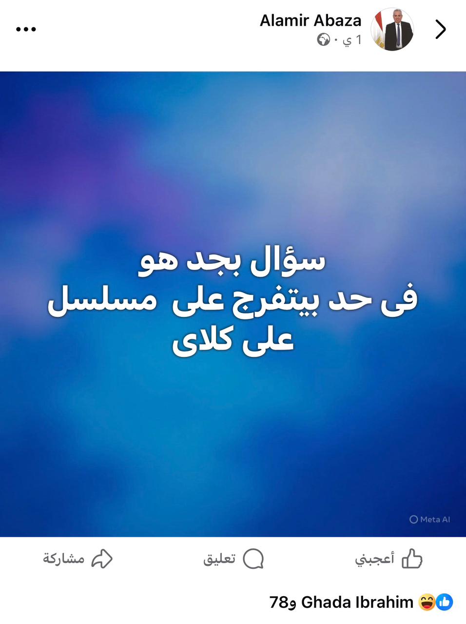 وكتب الأمير أباظة عبر منصة “فيسبوك” قائلا: "سؤال بجد هو في حد بيتفرج على مسلسل علي كلاي؟".