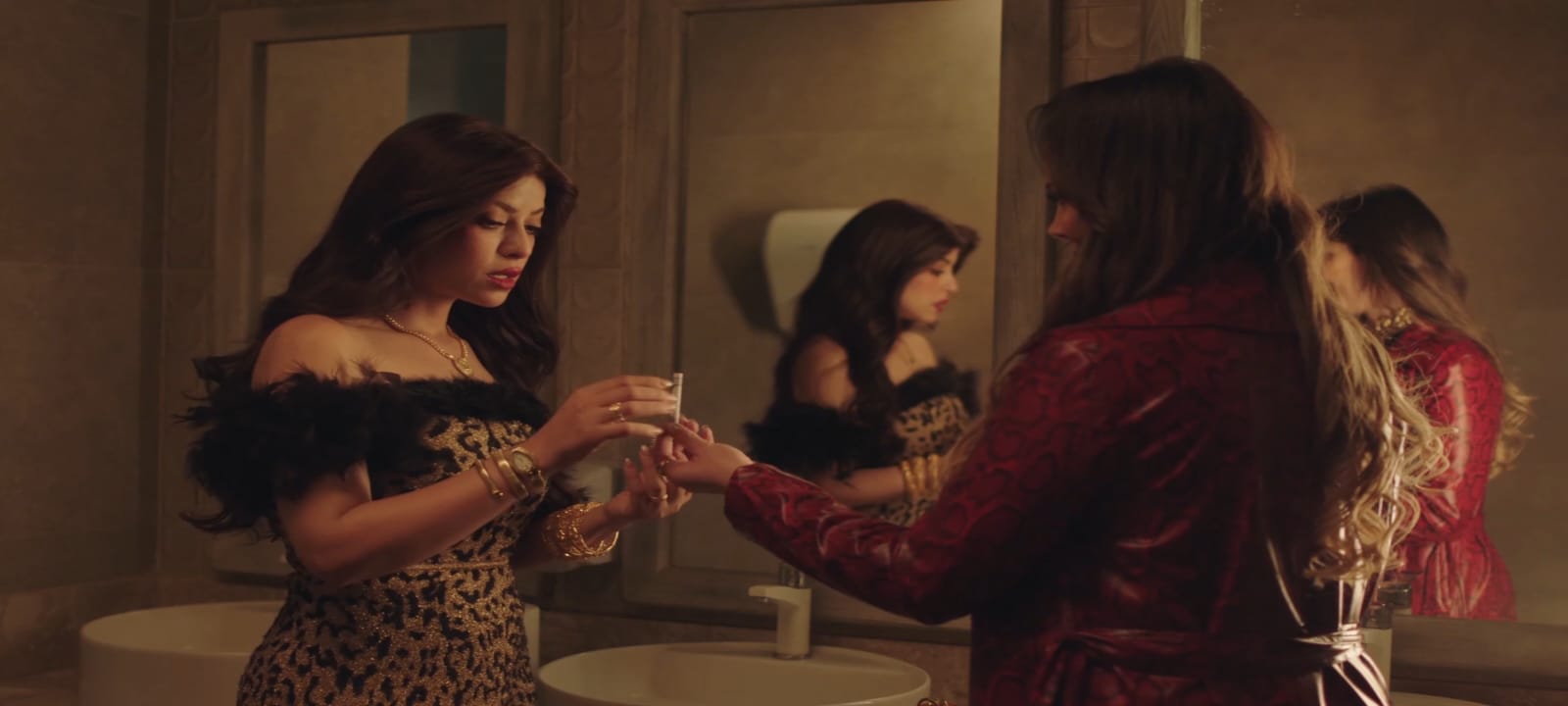 أثناء اجتماع رجال الأعمال، قامت إحدى الحاضرات بإعطاء هدية جرعة مخدرات زاعمة أنها تحسن المزاج وتمنع الشجار، كما أعطتها جرعة ثانية مع رقم التاجر لشرائها لاحقًا خلال سفرها خارج مصر.