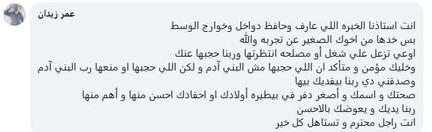 وانهالت التعليقات من متابعي إبراهيم عمران، حيث عبّر العديد منهم عن دعمهم وتضامنهم معه، حيث كتب عمر زيدان: "أنت أستاذنا، والخبرة عندك كبيرة، وعارف كل دواخل وخوارج الوسط. بس خد الكلام من أخوك الصغير عن تجربة: أوعى تزعل على شغل أو مصلحة كنت مستنيها وربنا حجبها عنك. خليك مؤمن ومتأكد أن اللي حجبها مش بني آدم، لكن اللي حجبها أو منعها هو رب البني آدم. وصدقني، ربنا بيحميك بيها صحتك، واسمك، وأولادك وأحفادك، وده أفضل وأهم منها ربنا يديك ويعوضك بالأحسن، أنت راجل محترم وتستاهل كل خير".