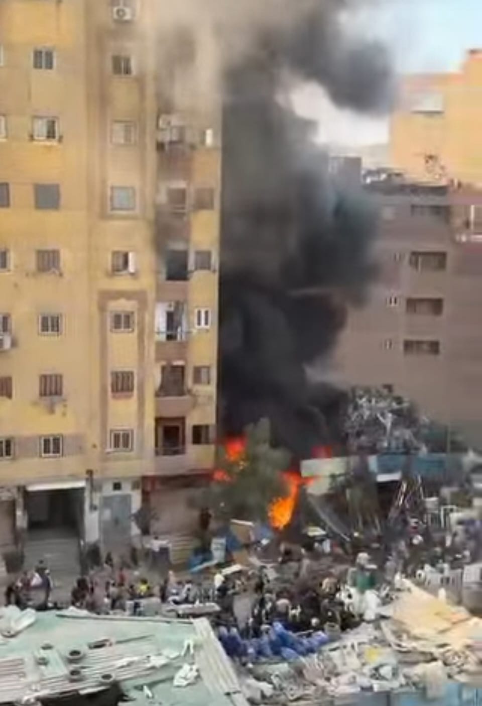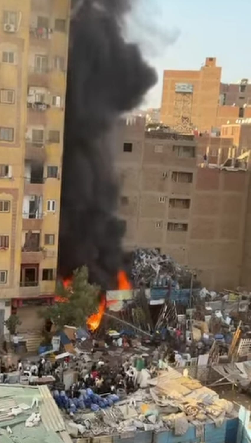 حريق هائل في مخزن خردة بالعمرانية وجهود مكثفة لمحاصرة النيران