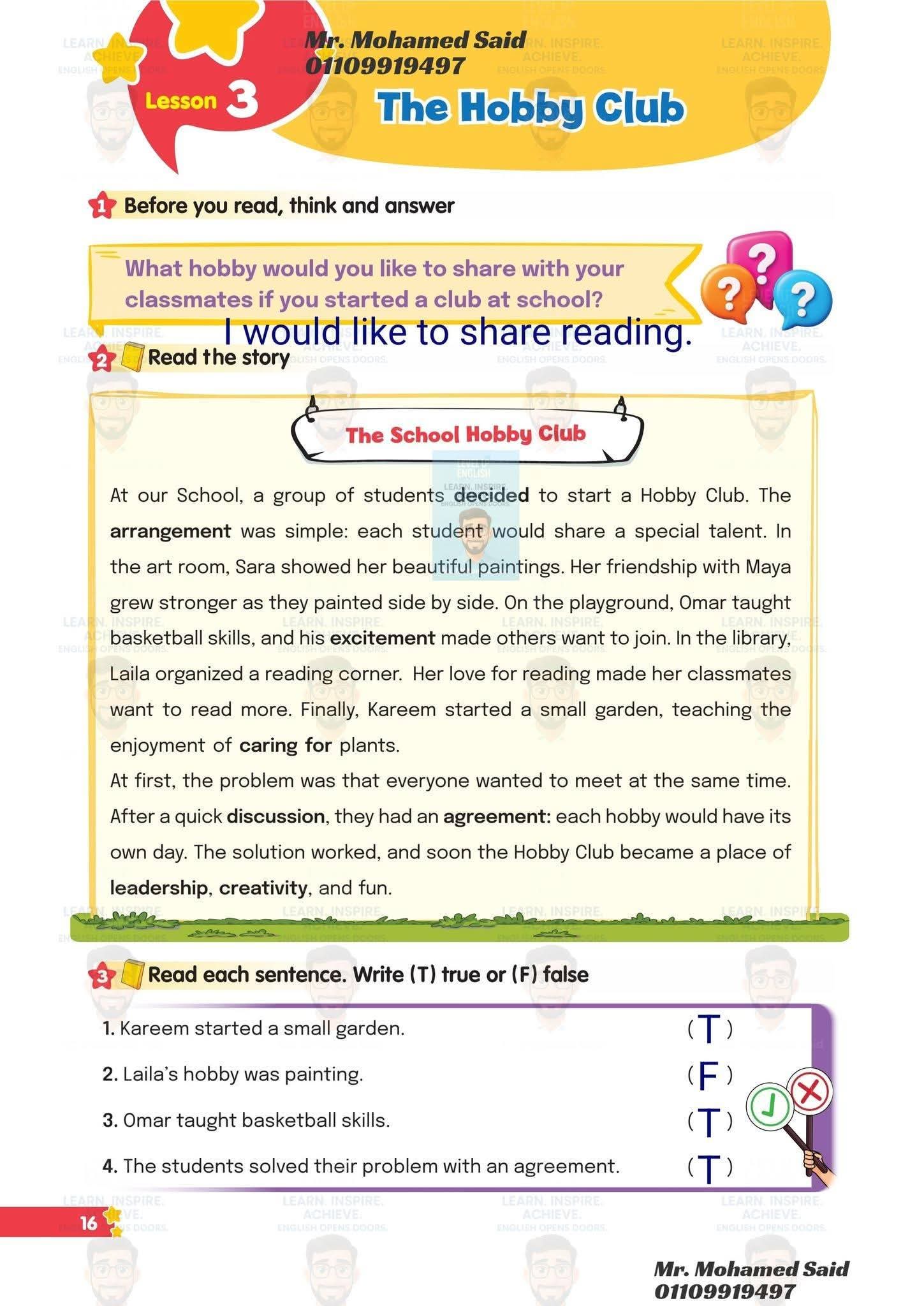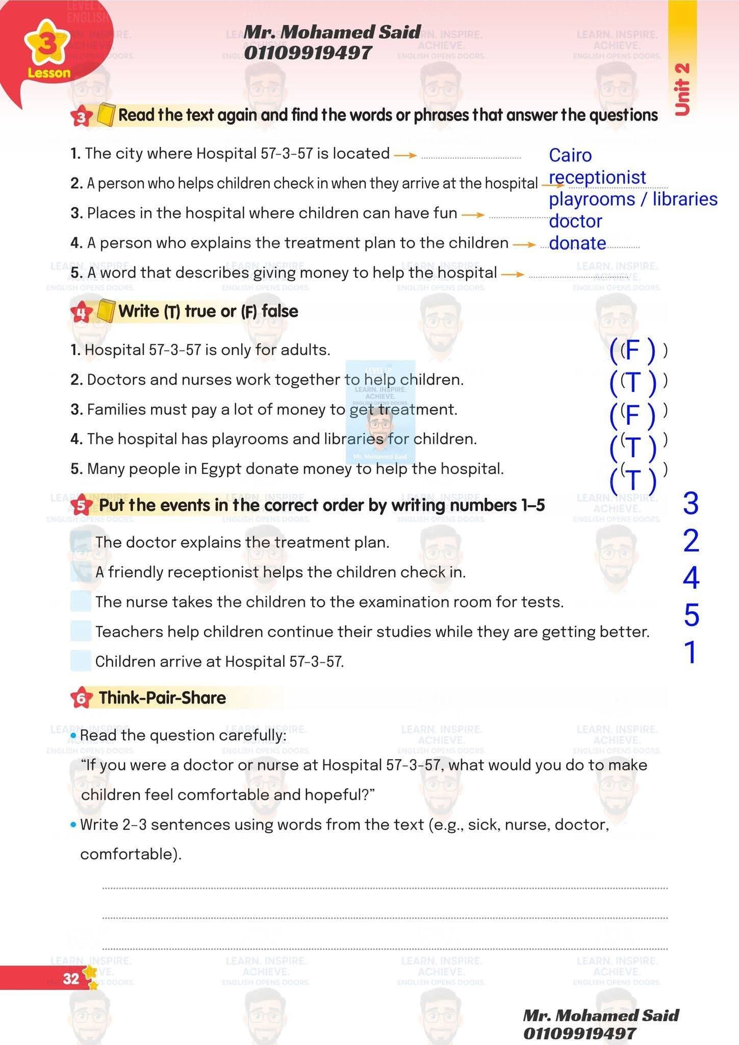 ويستطيع طلاب الصف الخامس الابتدائي الاطلاع على حل كتاب اللغة الإنجليزية الترم الثاني كالتالي: