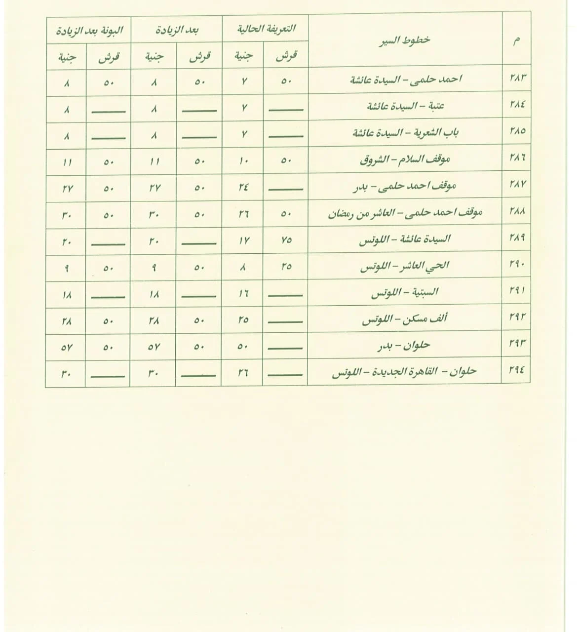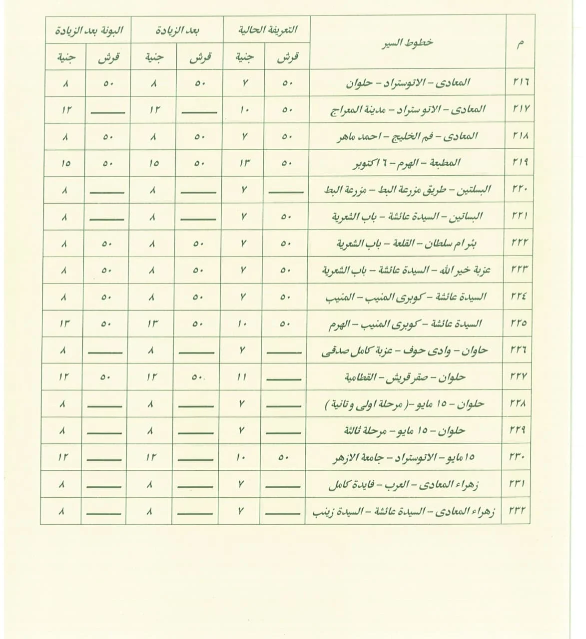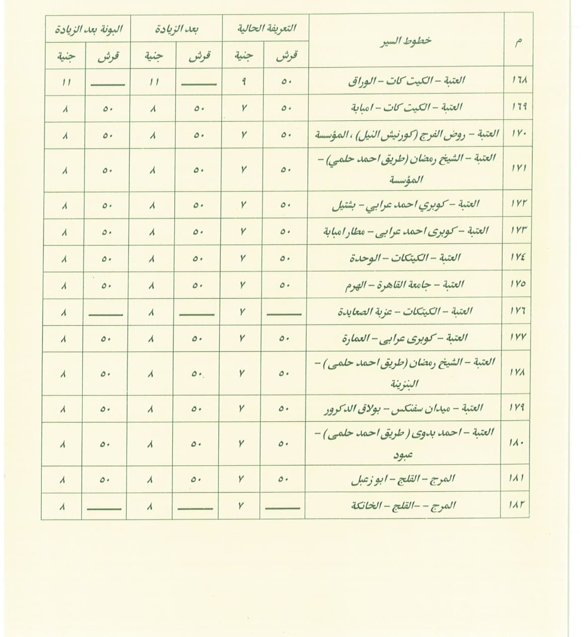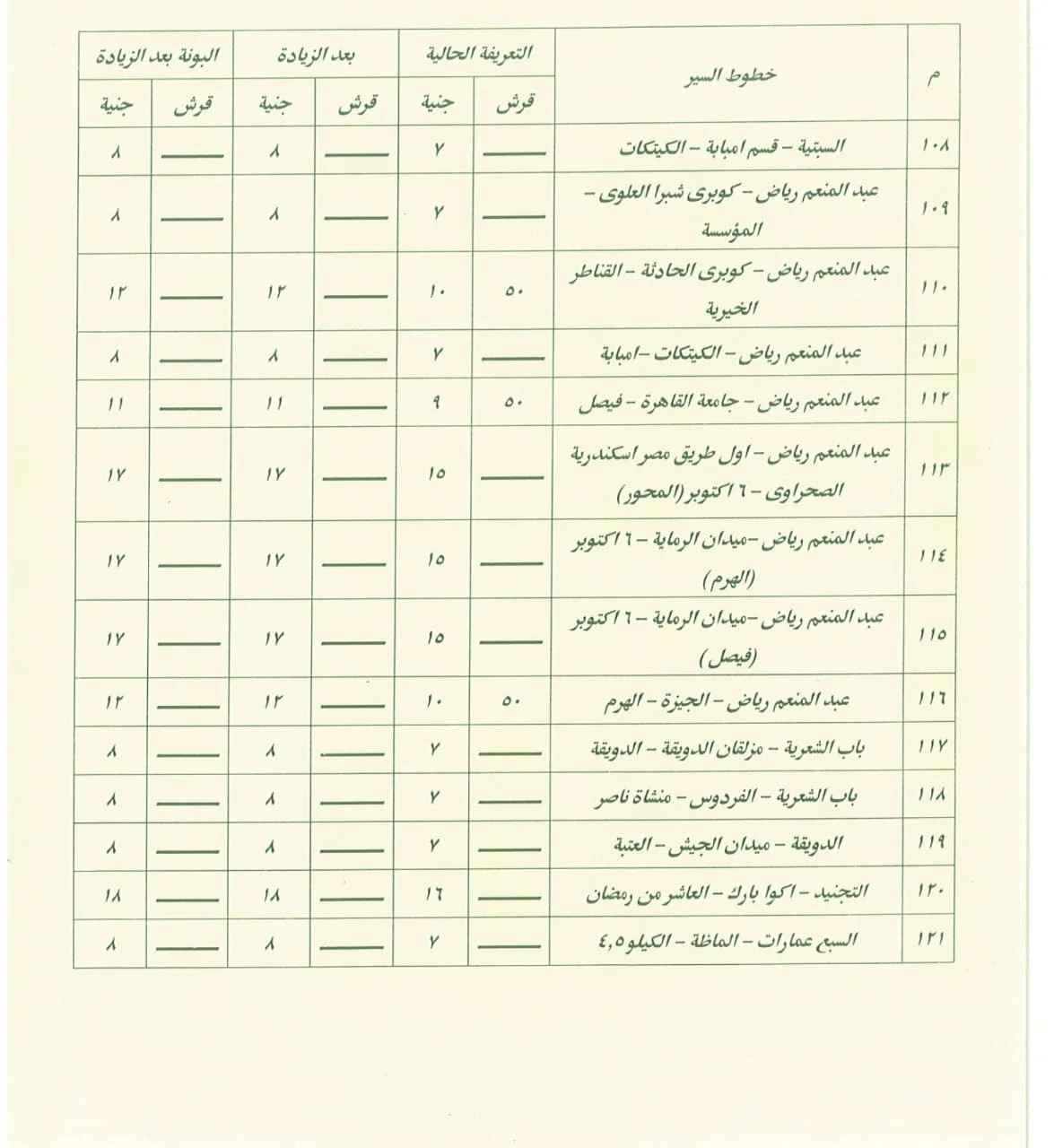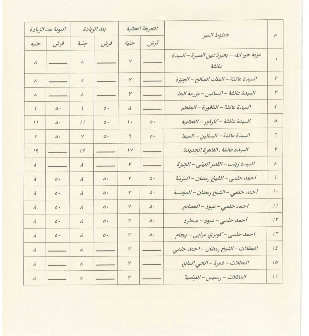 التعريفة الجديدة وفقًا لمسافة كل خط