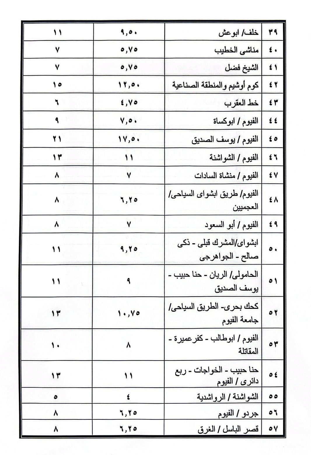 ووجه محافظ الفيوم مدير عام المواقف بالإعلان عن التعريفة الجديدة في مكان واضح بجميع مواقف السيارات داخل المحافظة من خلال وضع لافتات موضح بها خطوط السير وقيمة الأجرة المقررة لكل خط.