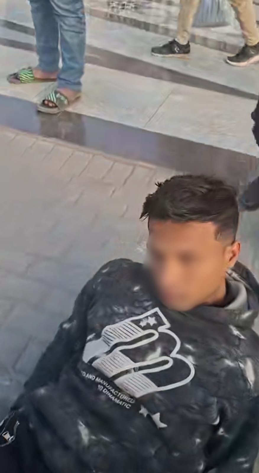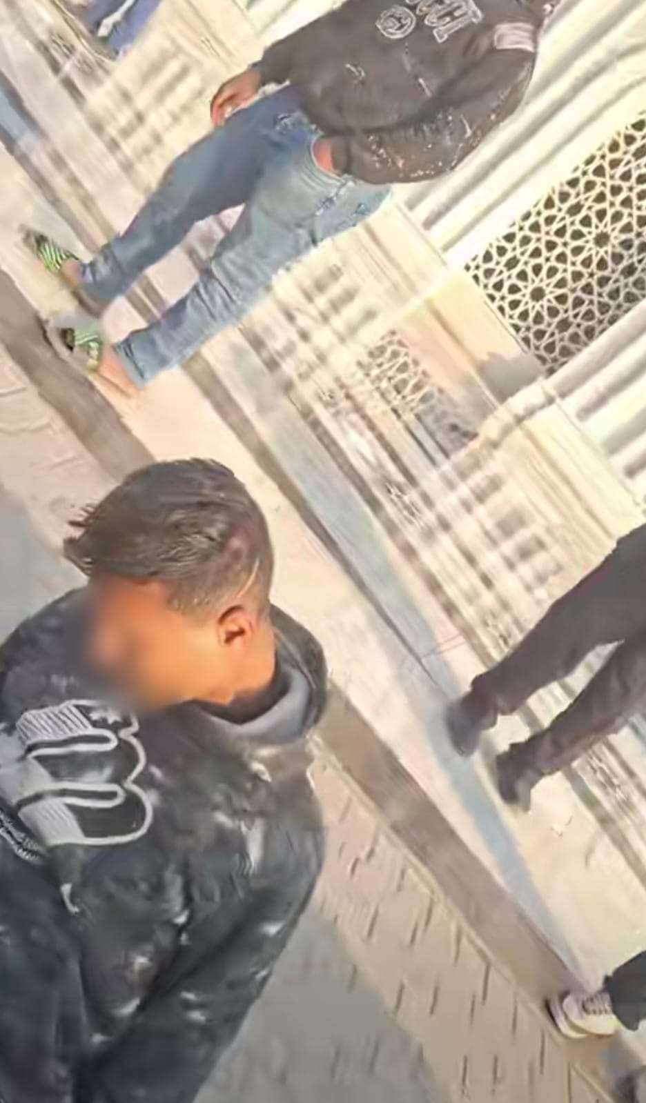 ويظهر في المقطع، الذي تبلغ مدته نحو 55 ثانية، شخص أثناء تصويره للشاب الجالس أمام باب المسجد، حيث يعلق قائلًا إنه في حالة غير طبيعية نتيجة تعاطي المخدرات.