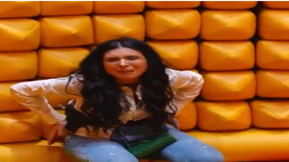 أحد الأسئلة كان عن الراقصات المنافسات لدينا، حيث سألها رامز: “مين أكتر واحدة بتقلقك، بدرة ولا صافينا؟” لترد عليه: “أنا مفيش حاجة في الدنيا بتقلقني”.