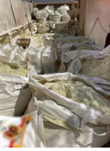 وعقب تقنين الإجراءات تم استهداف المصنع المشار إليه، وأمكن ضبط المدير المسؤول، ورئيس العمال، وعثر بداخله على 4500 طن منتج نهائي ومواد خام مستخدمة في تصنيع الأسمدة والمخصبات الزراعية المغشوشة، مجهولة المصدر، خط إنتاج كامل.