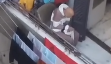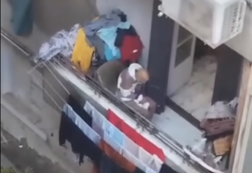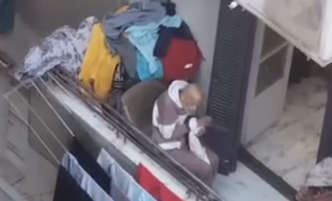 ويُظهر الفيديو المسن جالسًا داخل الشرفة ويداه مكبلتان، بينما يحاول الاستغاثة وفك قيوده دون استجابة من المتواجدين.