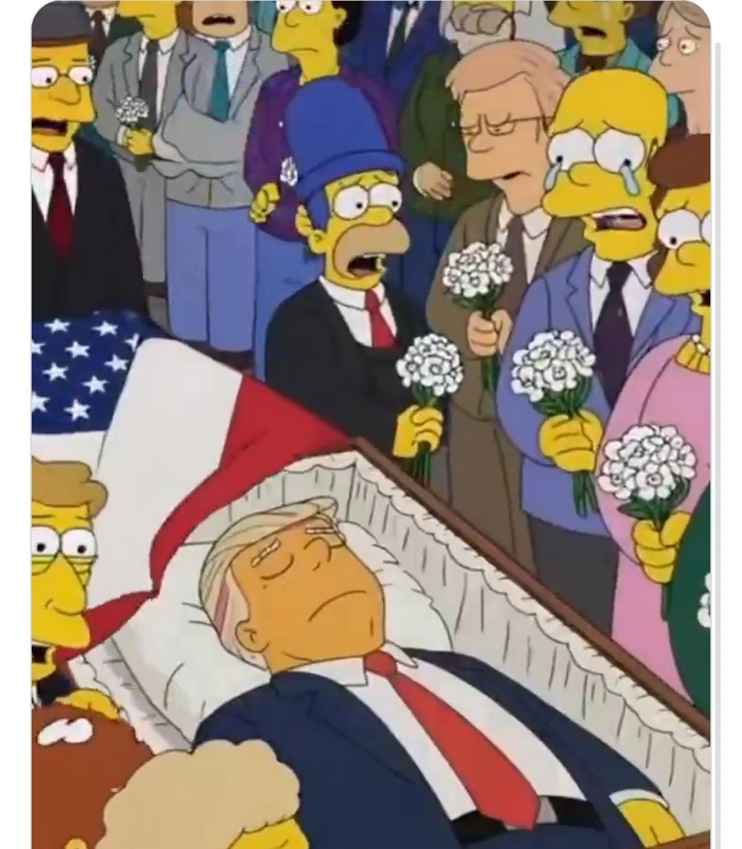 أثارت فيديوهات وصور كارتونية من المسلسل الشهير "عائلة سيمبسون"، تجسد فيما يبدو الرئيس الأمريكي دونالد ترامب داخل تابوت محاطا بمجموعة من المشيعين، مرفقة بادعاء أن المسلسل تنبأ بوفاته في 14 مارس 2026، مما أثار ضجة كبيرة عبر مواقع التواصل الاجتماعي، لا سيما أن بعض نبؤات المسلسل تحققت بالفعل، ما زاد التفاعل مع المنشور.